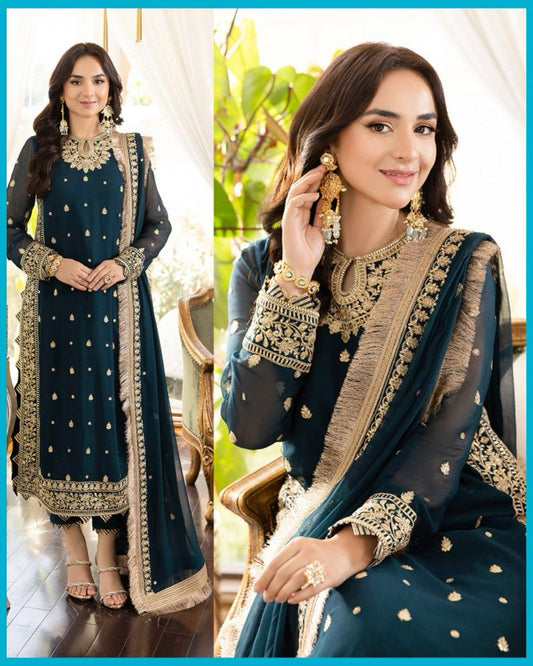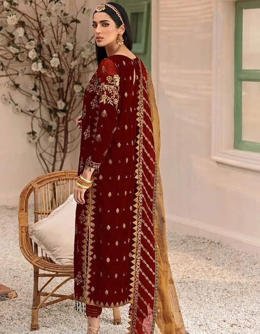 Eman Adeel Velvet Embroidery Suit Net Embroidary Dupatta