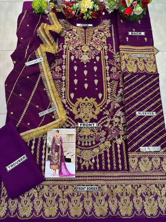 EMAN ADEEL Velvet Embroidery Suit Net Embroidary Dupatta