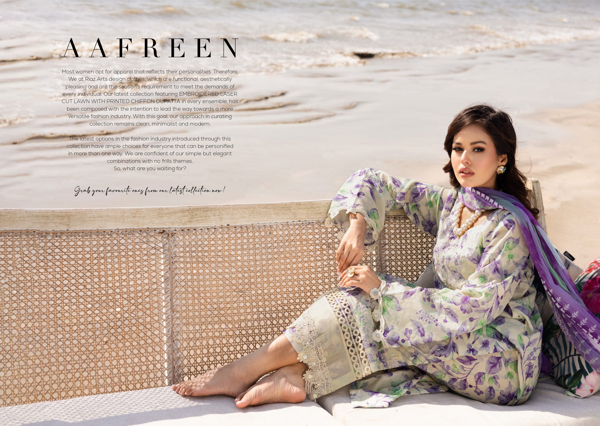 Embroidered Laser Cut Lawn Shirt With Digital Printed Chiffon Dupatta & Cambric Trouser