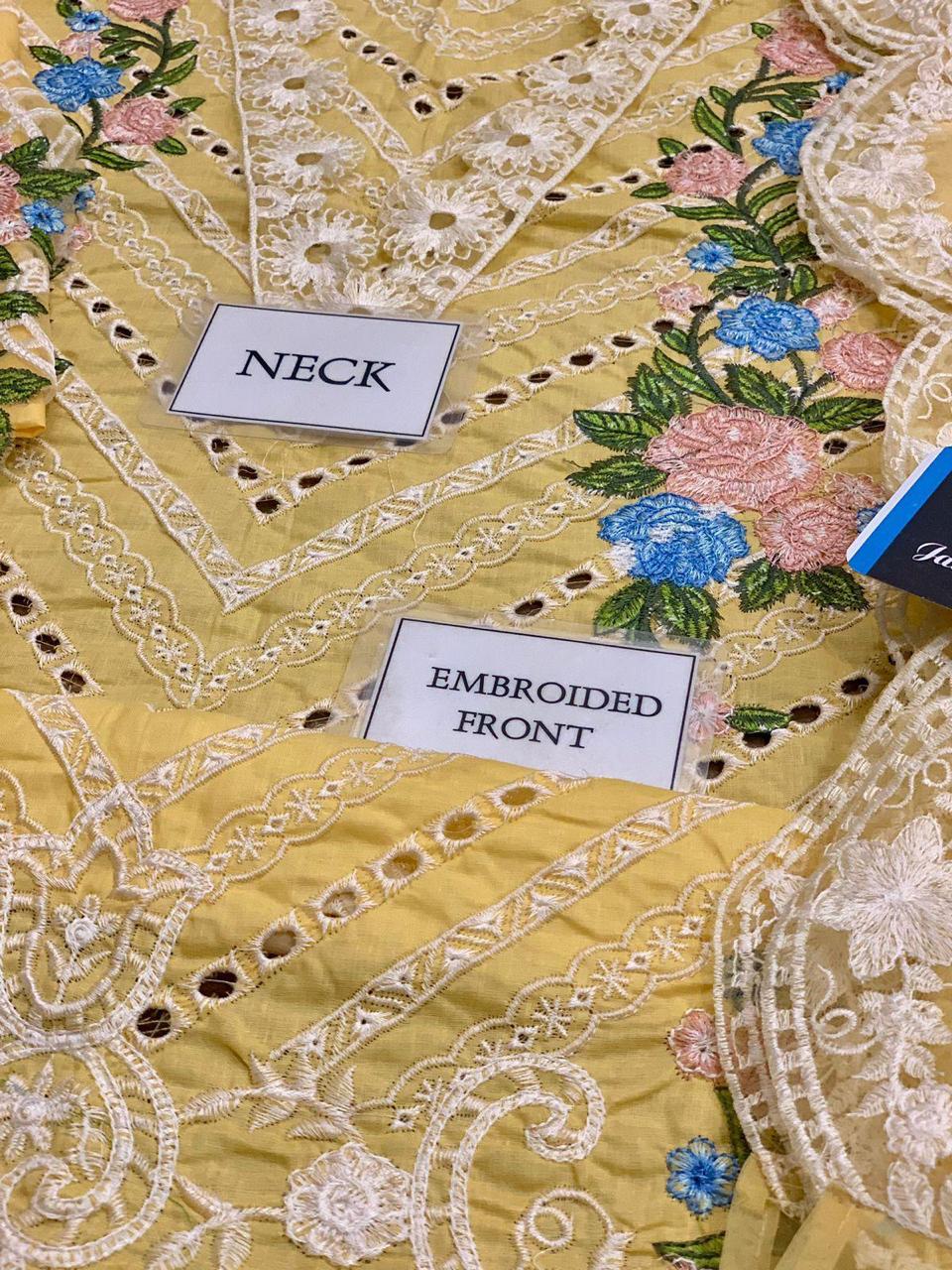 *lawn fully heavy alternet Schifflie embroidered front with fully heavy embroidered neck with Fully embroidered bunch for front fully heavy embroidered daman embroidered boarder*