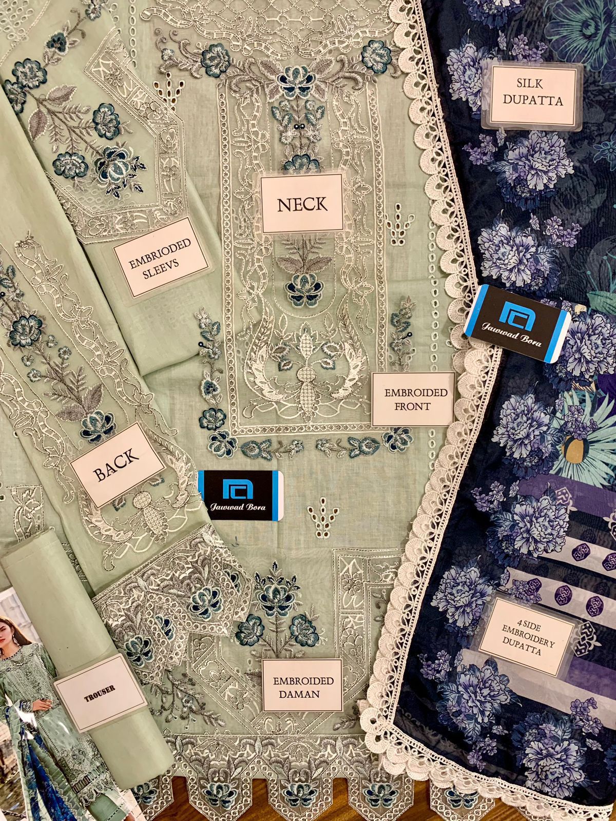 LAWN COTTON CHICKEN KARI SUIT WITH SILK DUPATTA 4 SIDE LACE ATTACHED DUPATTA