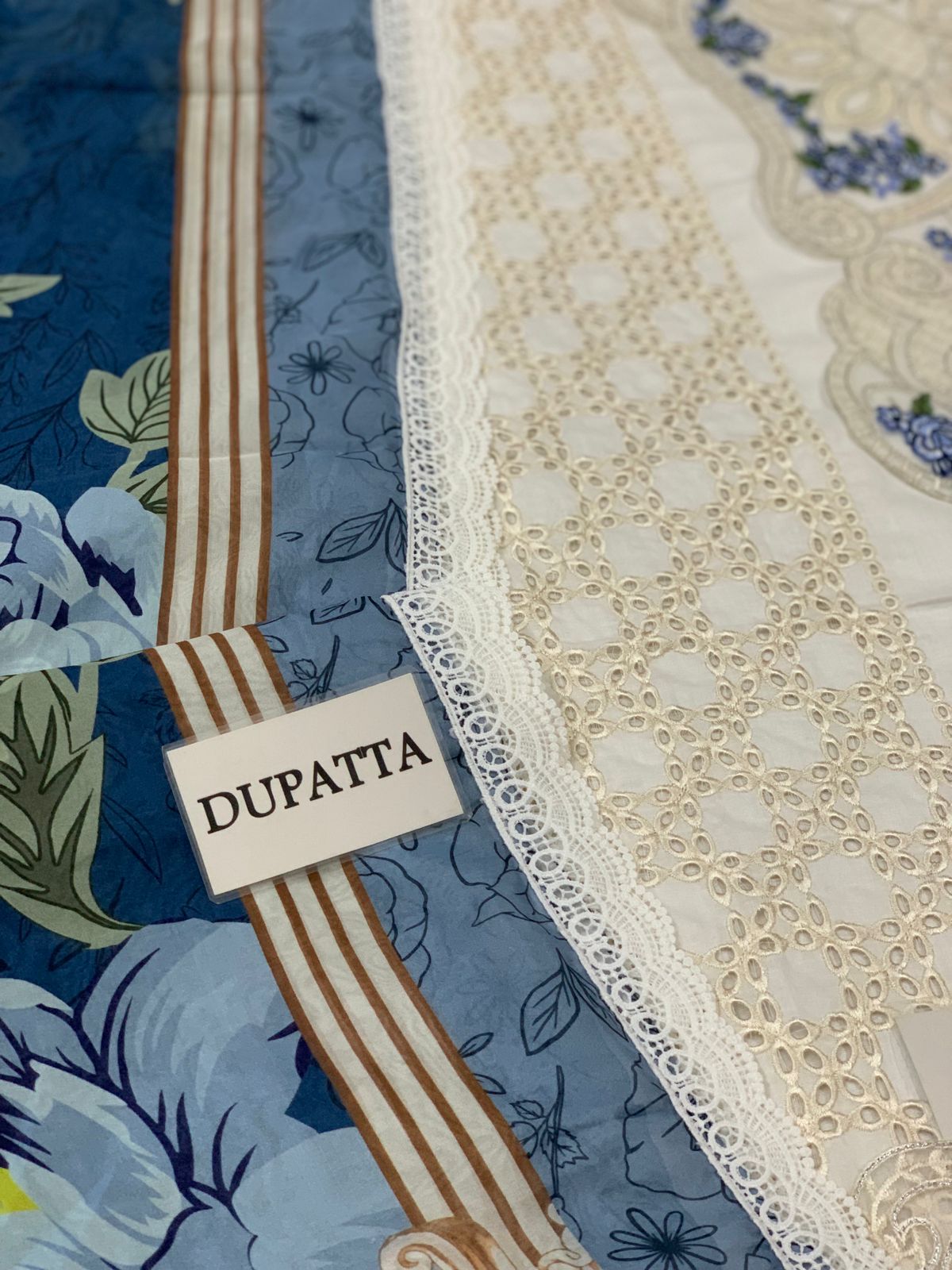 Digital Printed Silk Dupatta With Four Side Schifflie Lace Attached