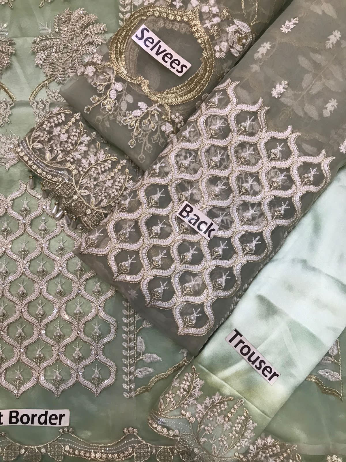 Heavy Embroidered Organza Front with stone and Pearls Work