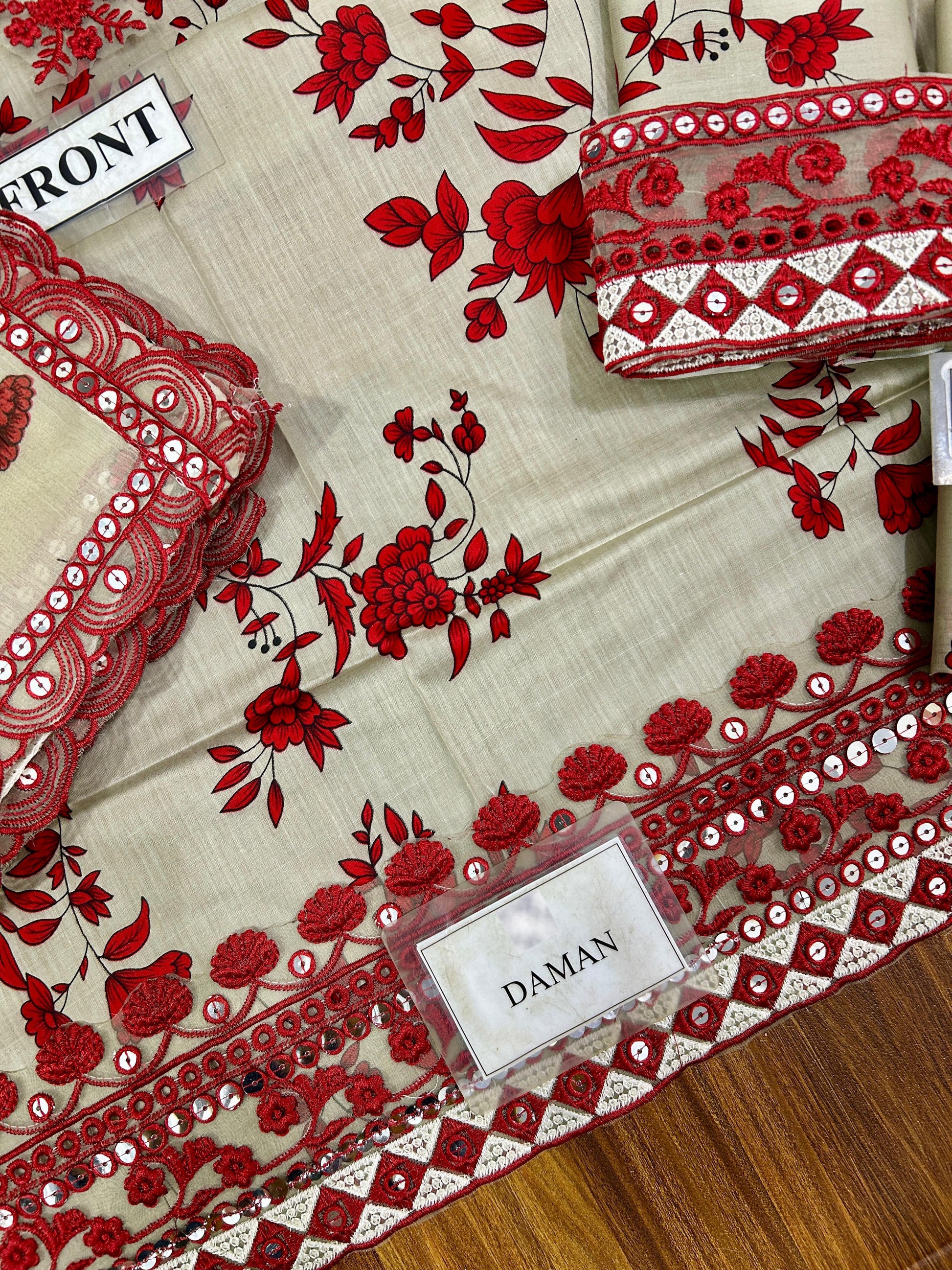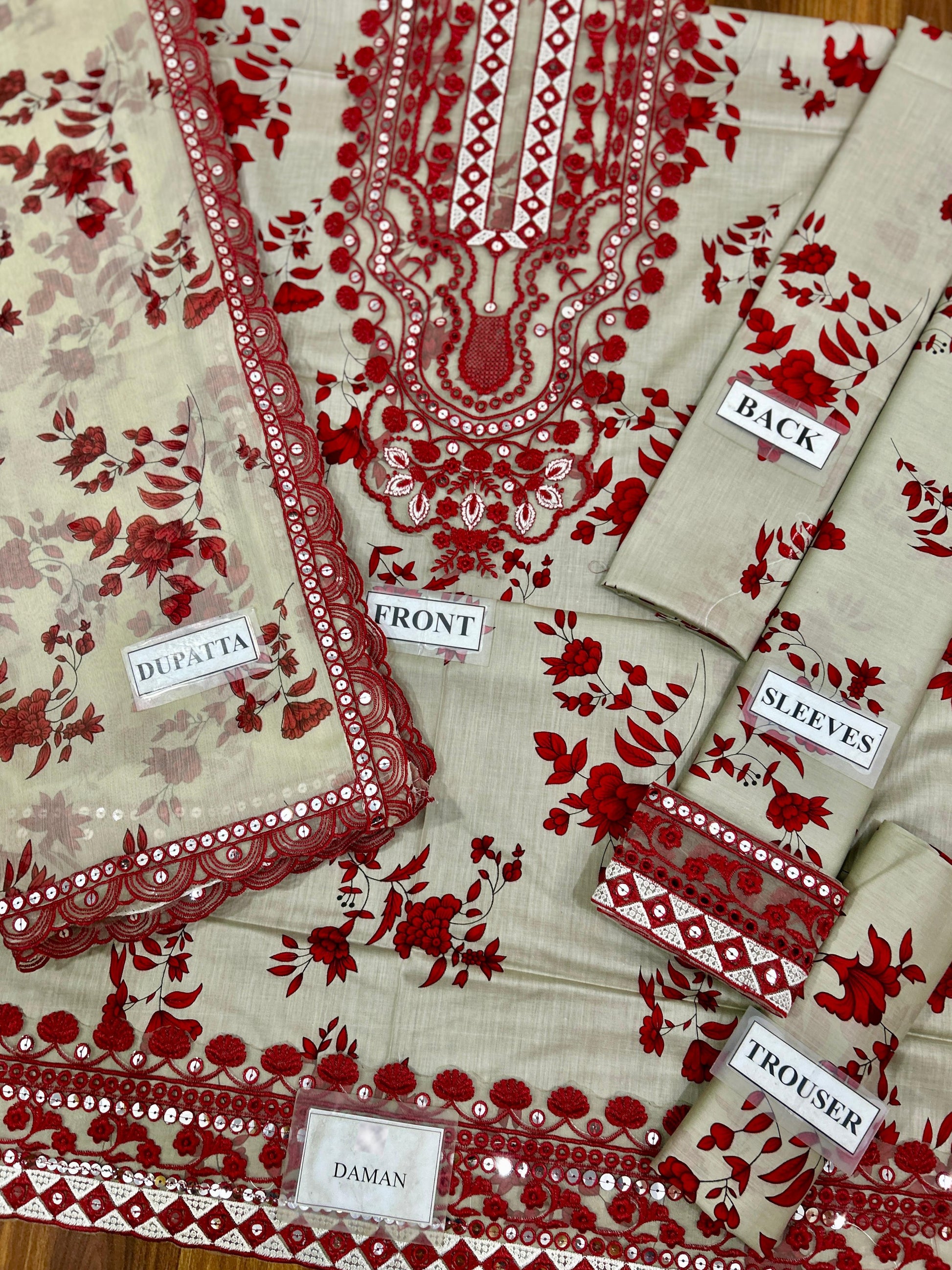 *Chiffon Dupatta 4 Side Applic Dupatta with 9mm Sitara Emb*