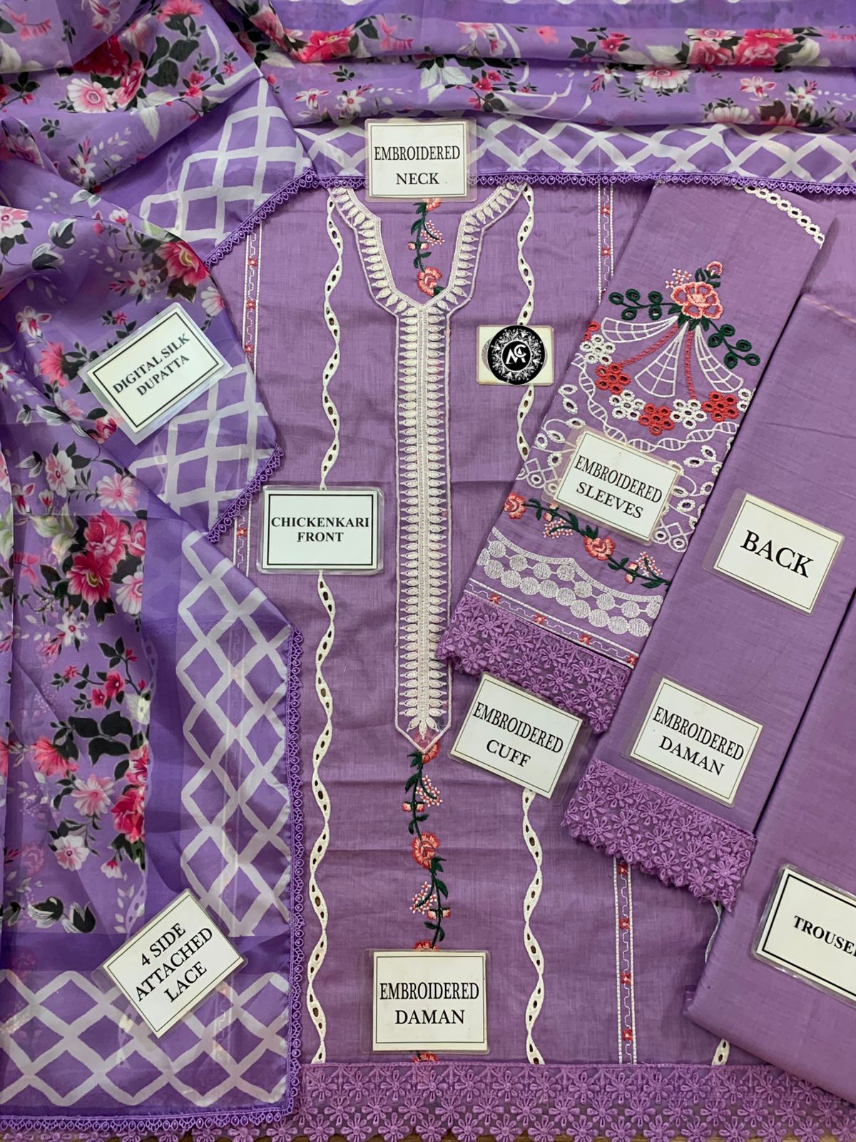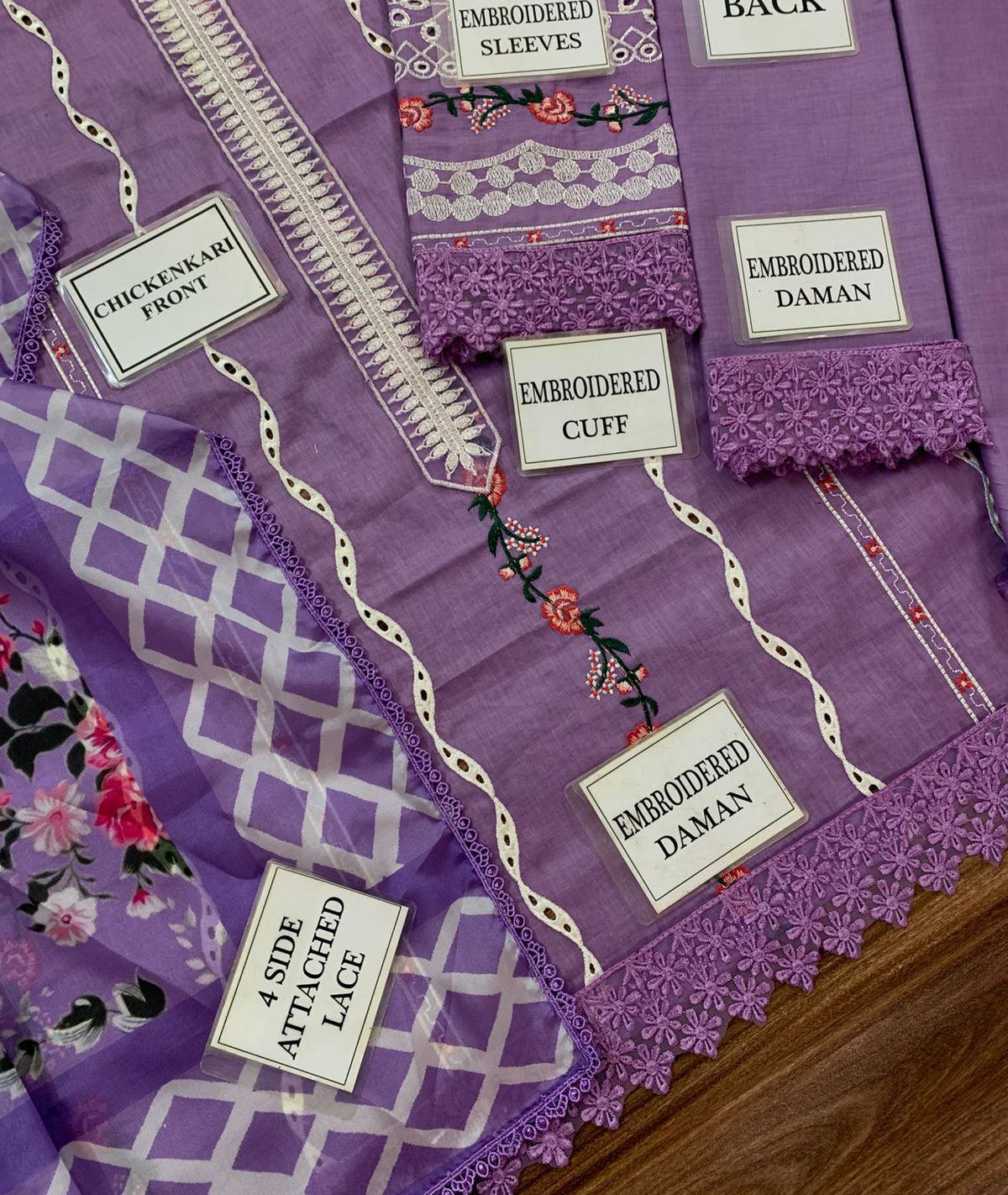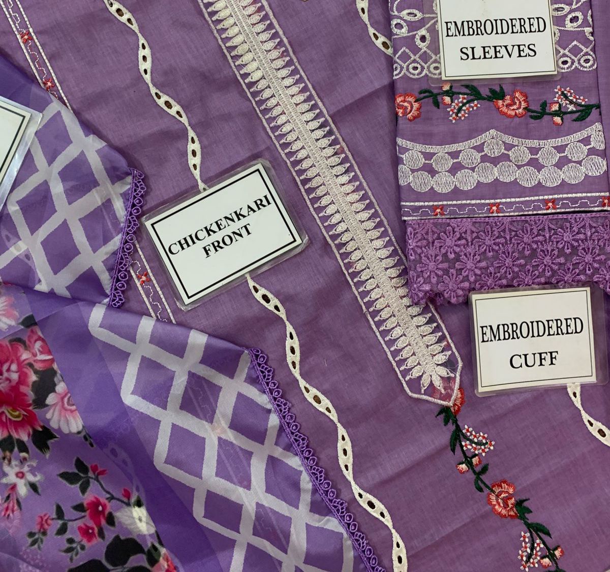 LAWN CHICKEN KARI SLEEVES ALONG WITH HEAVY EMBROIDERED CUFF PATCH