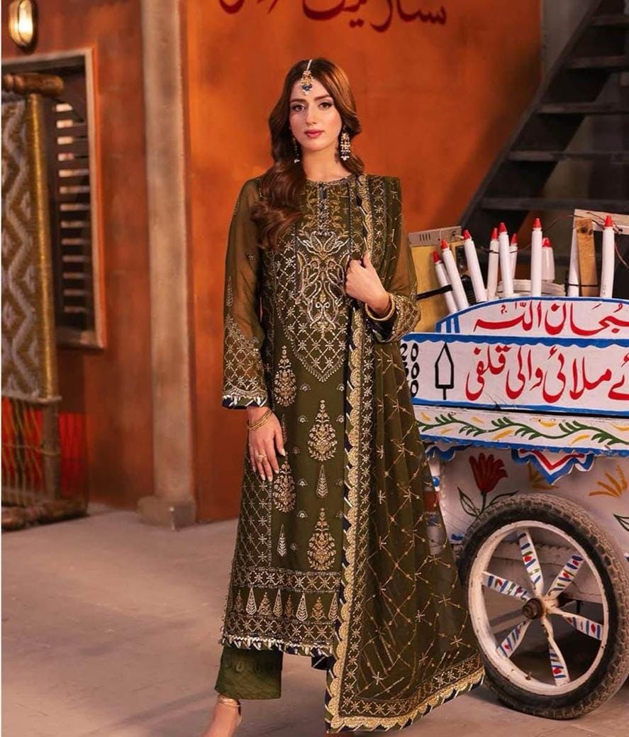 Semi Pure Chiffon Sequence Embroidered Front