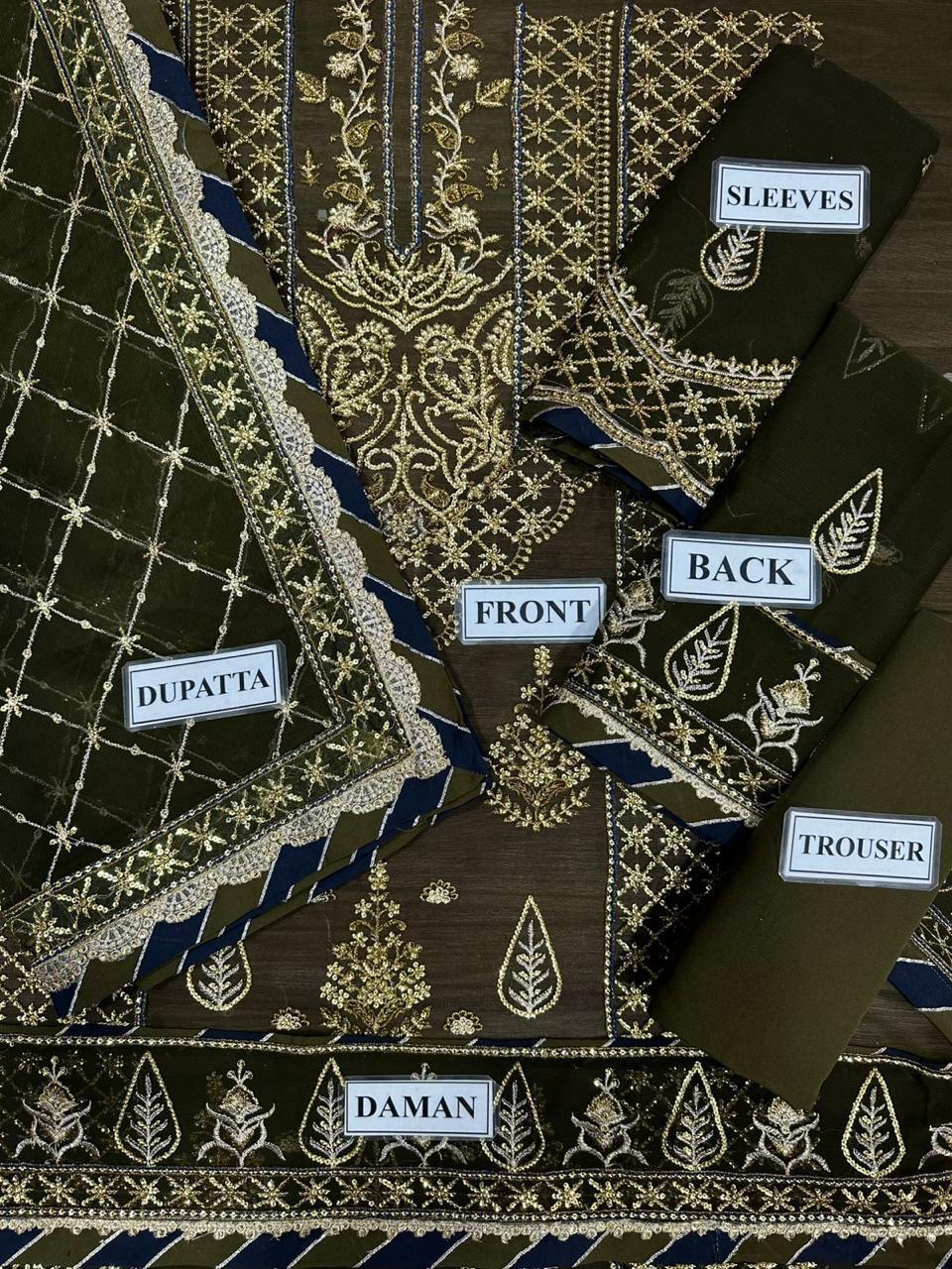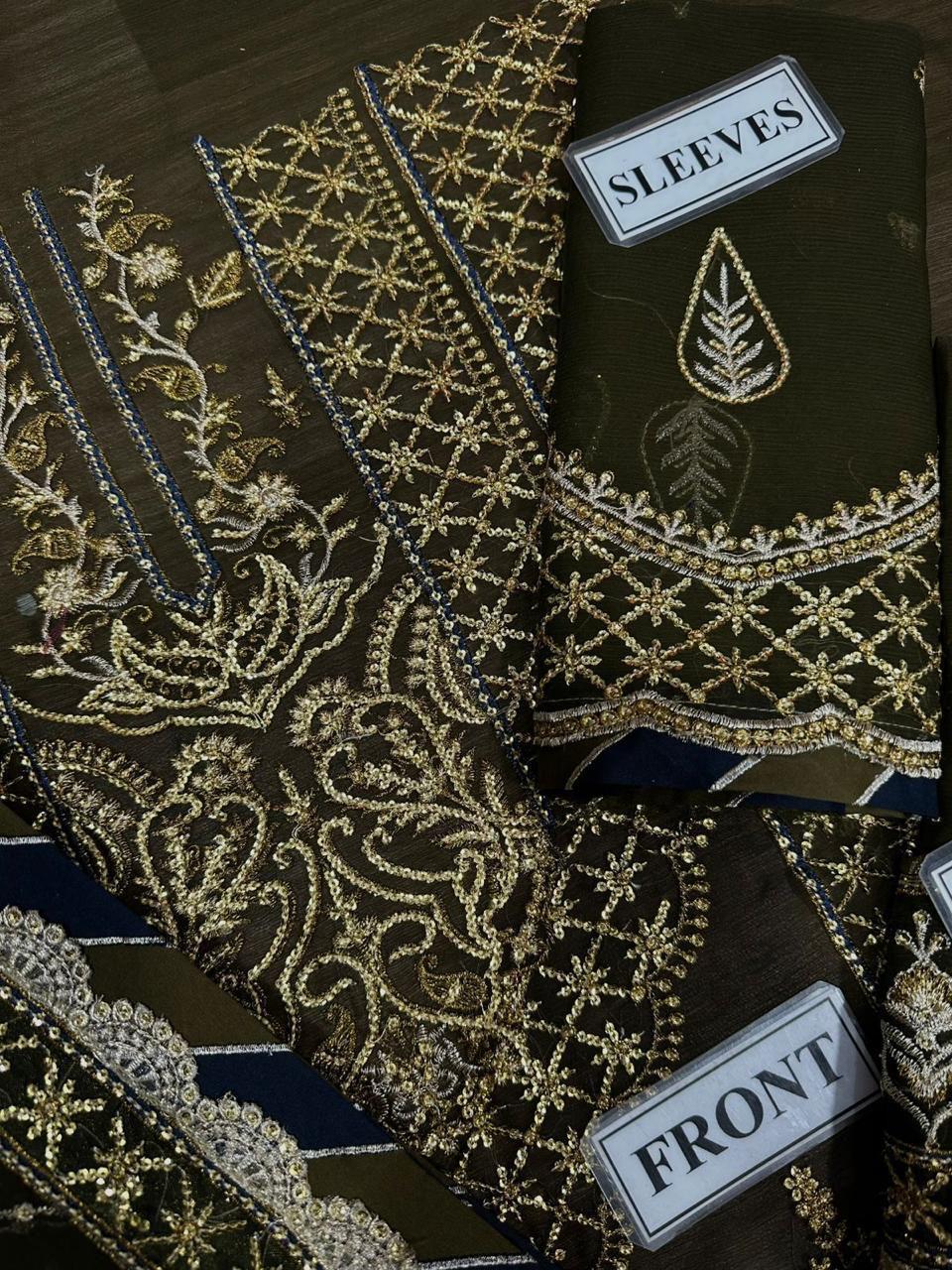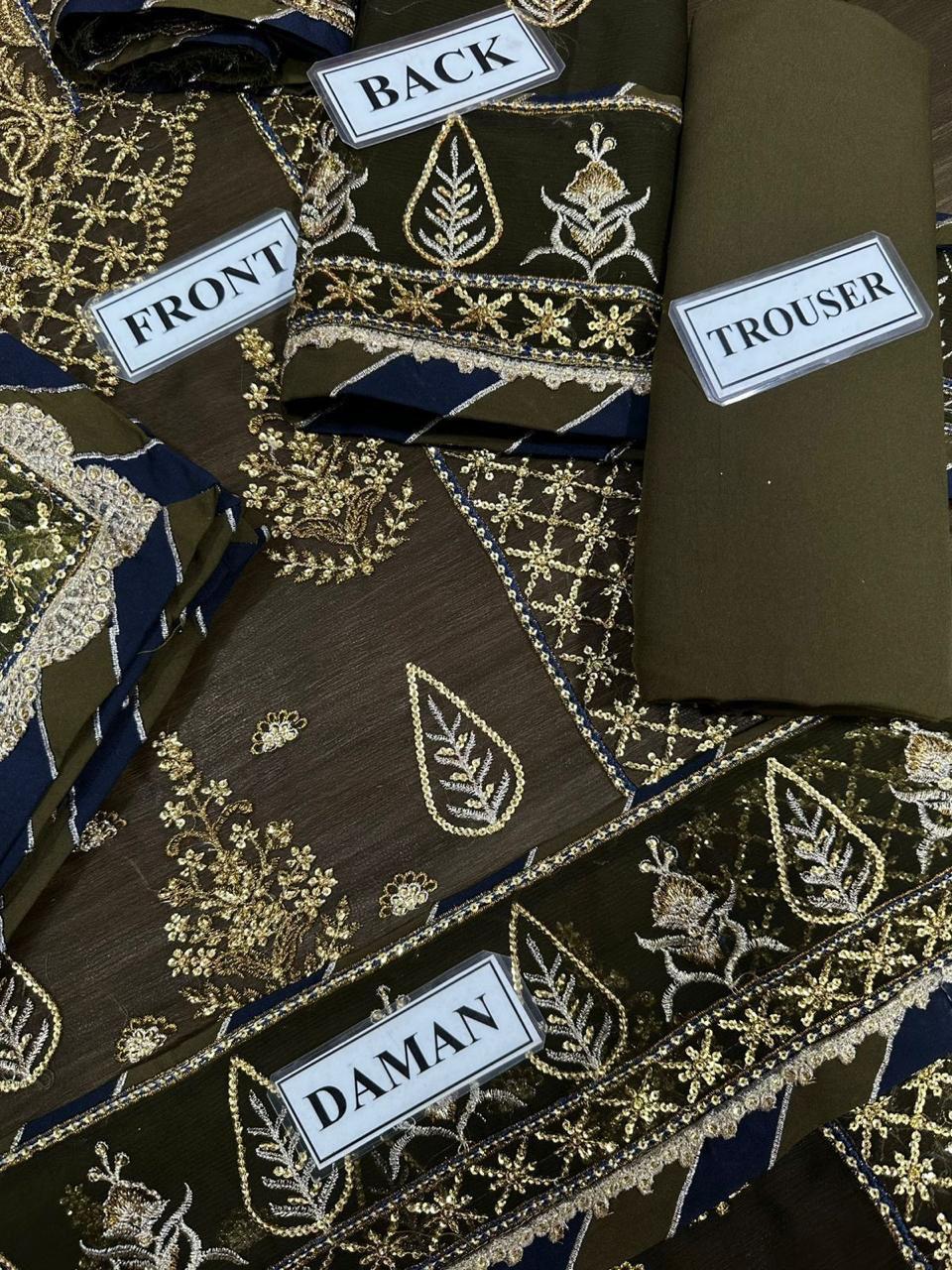 Semi Pure Chiffon Sequence Embroidered Back