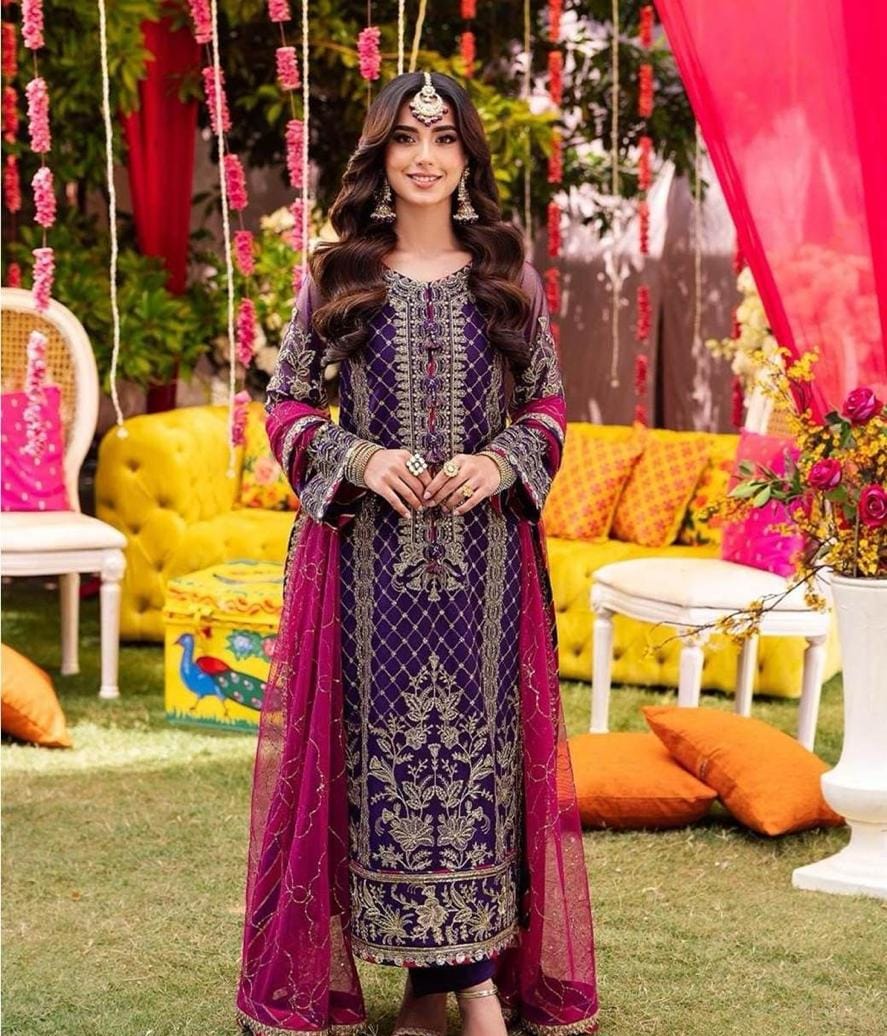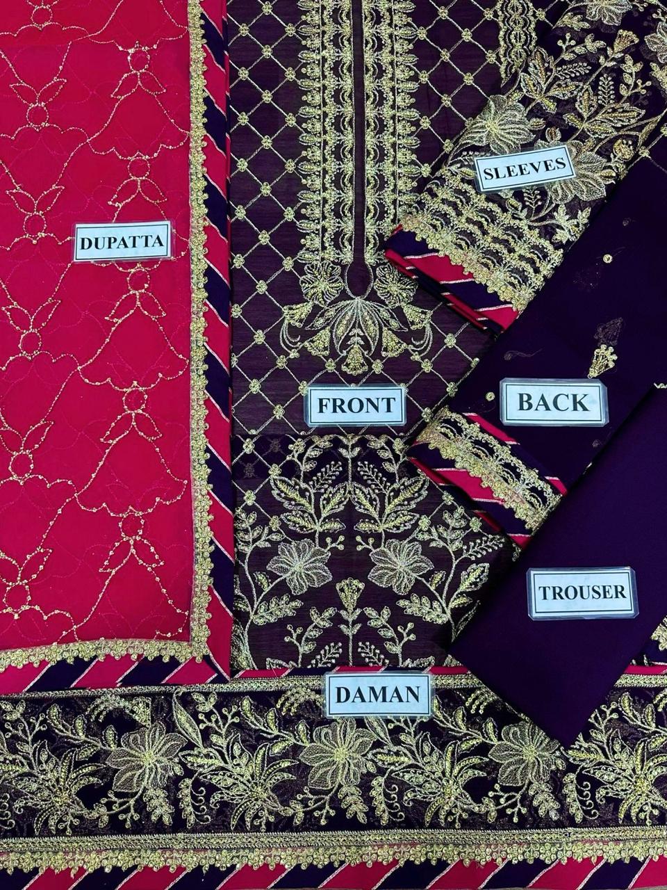 Semi Pure Chiffon Sequence Embroidered Daman Border
