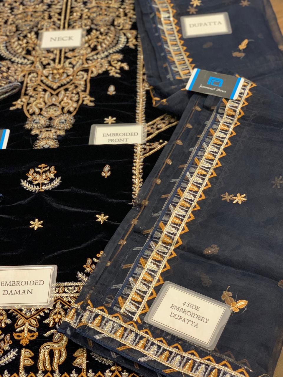 *velvet fully heavy embroidered spengle work back with heavy embroidered spengle work back daman boarder*