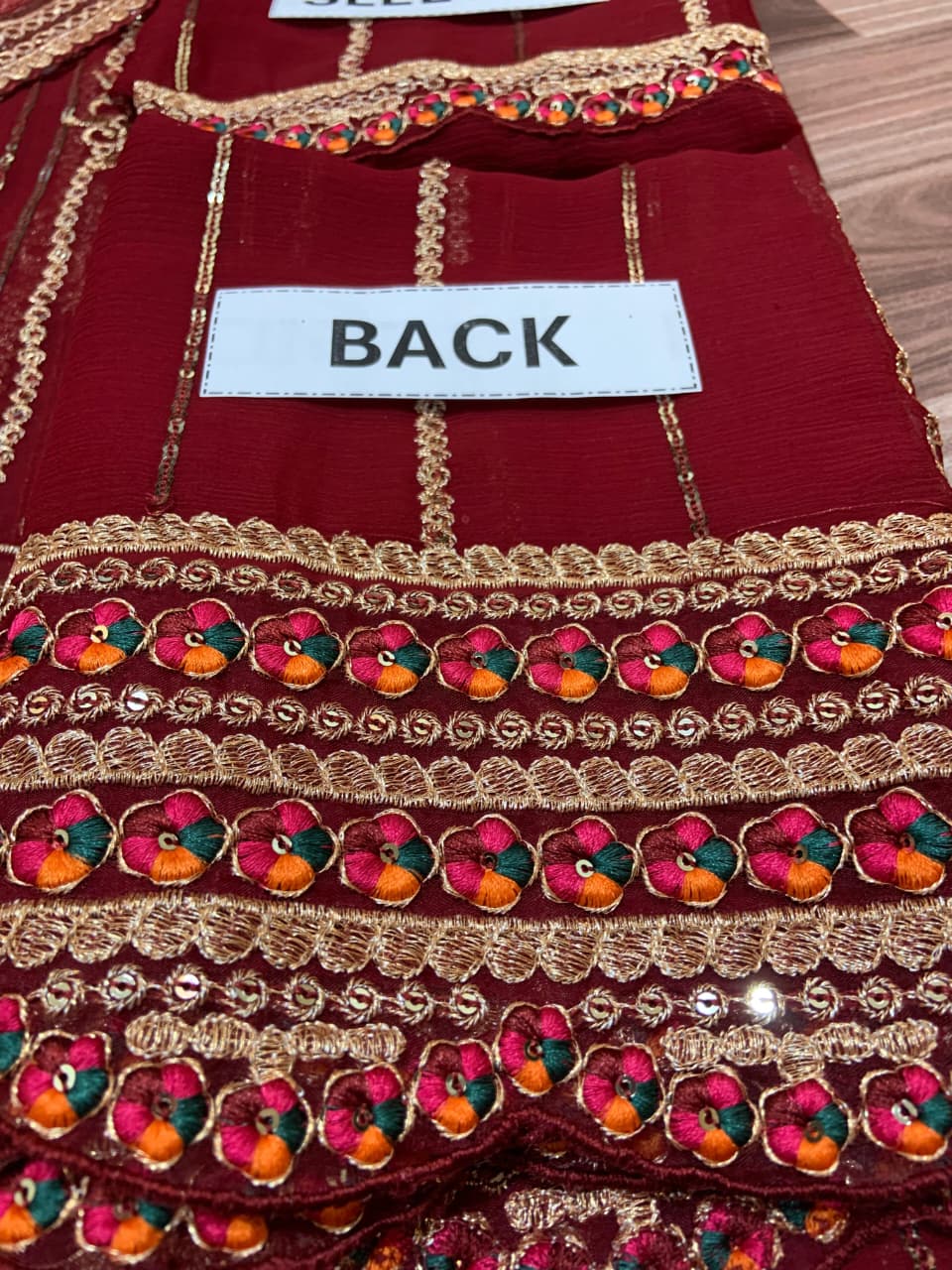 Dupatta Chiffon 2 Side cutwork Embroidered Border 2 Side Embroidered Pallu