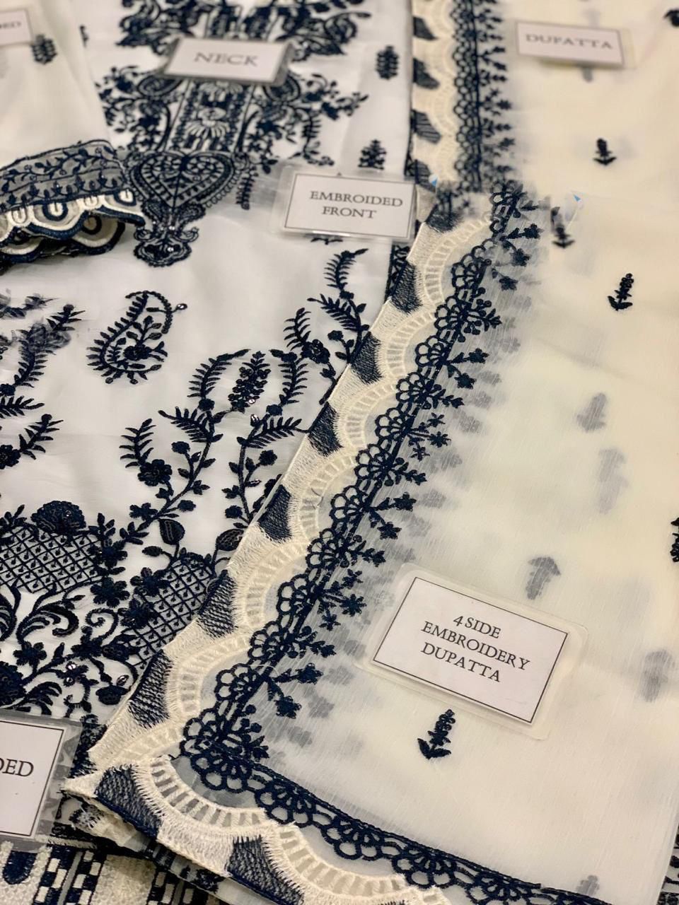 *chiffon fully embroidered spengle work back with heavy embroidered spengle work back daman boarder with embroidered spengle work chal lace*