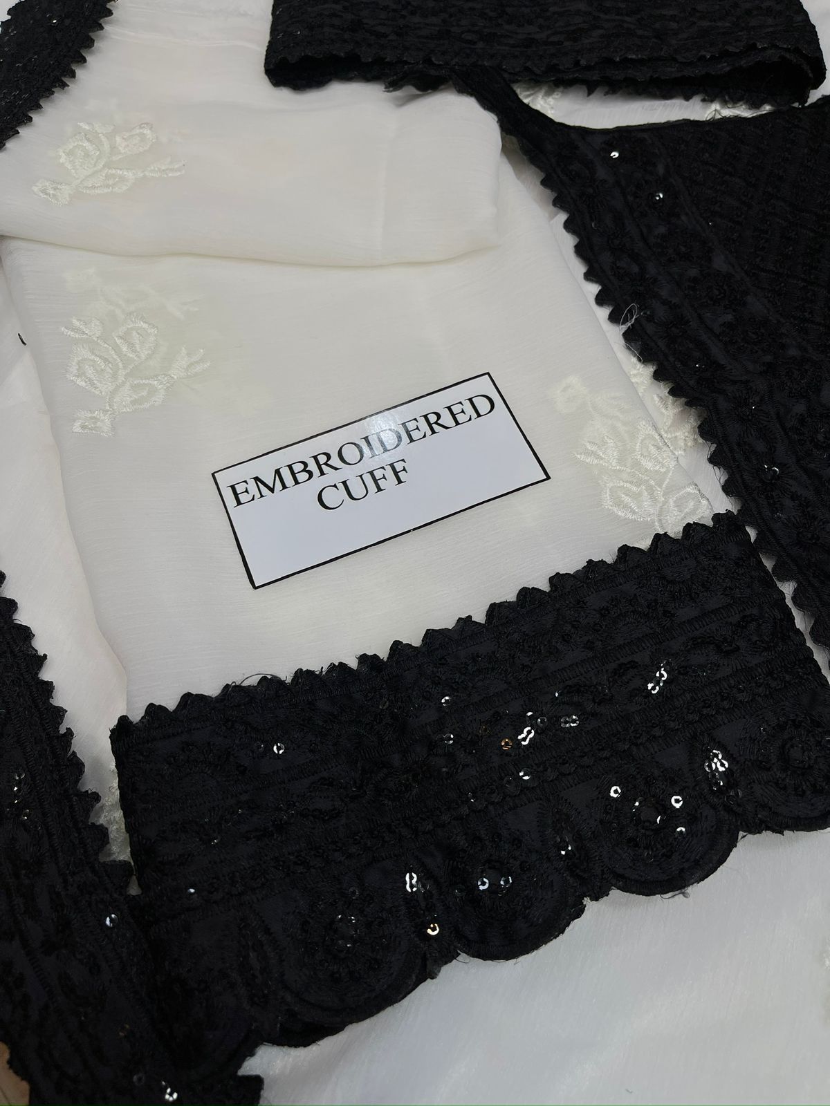 Chiffon Fully Embroidered Spengle Work Sleeves With Heavy Embroidered Work Sleeves Border