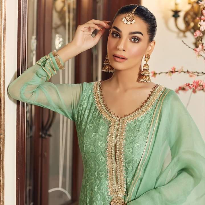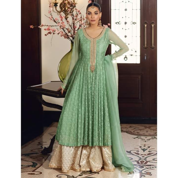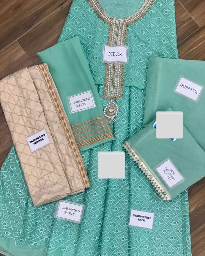 *Chiffon Fully Heavy Embroidered Front & Back Ghera Full Length & Width*