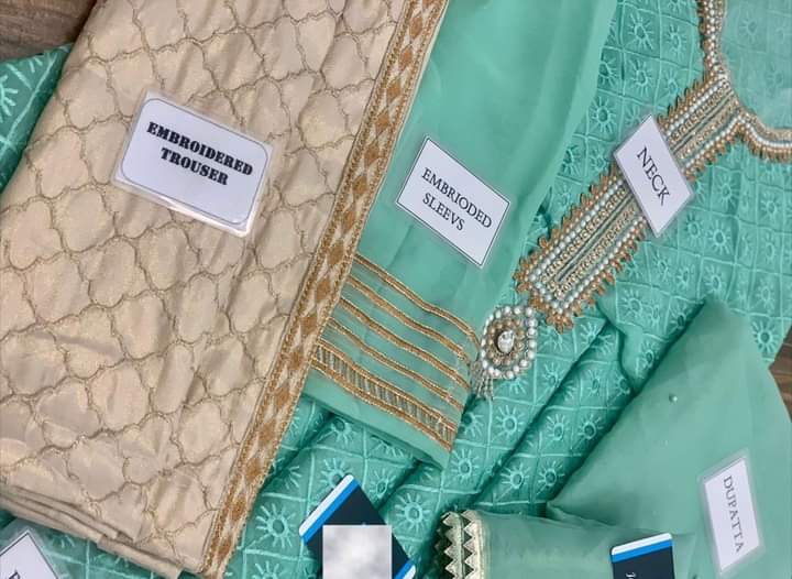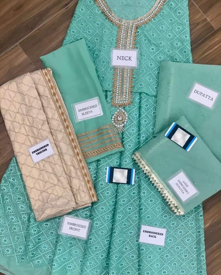 *Chiffon Fully Heavy Embroidered Front Body With Embroidered Neckline With Fully Hand Work*