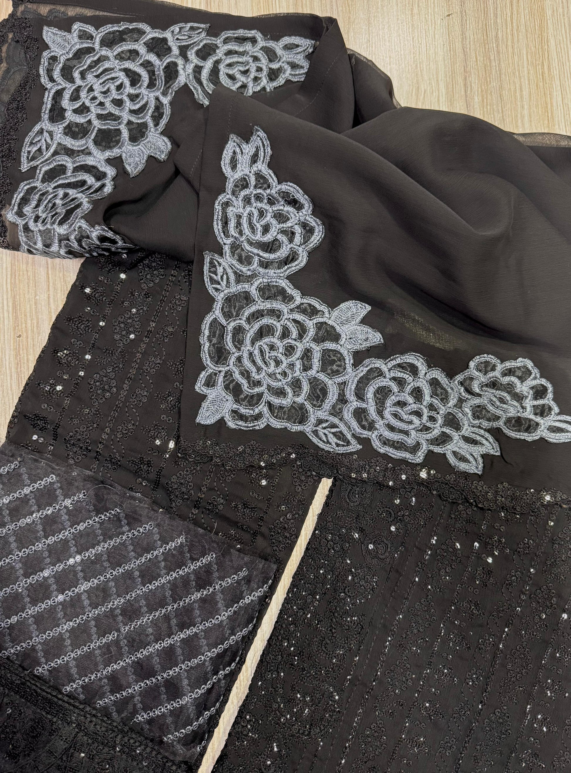 Organza Sequence Embroidered 2 Step Daman Border front & Back