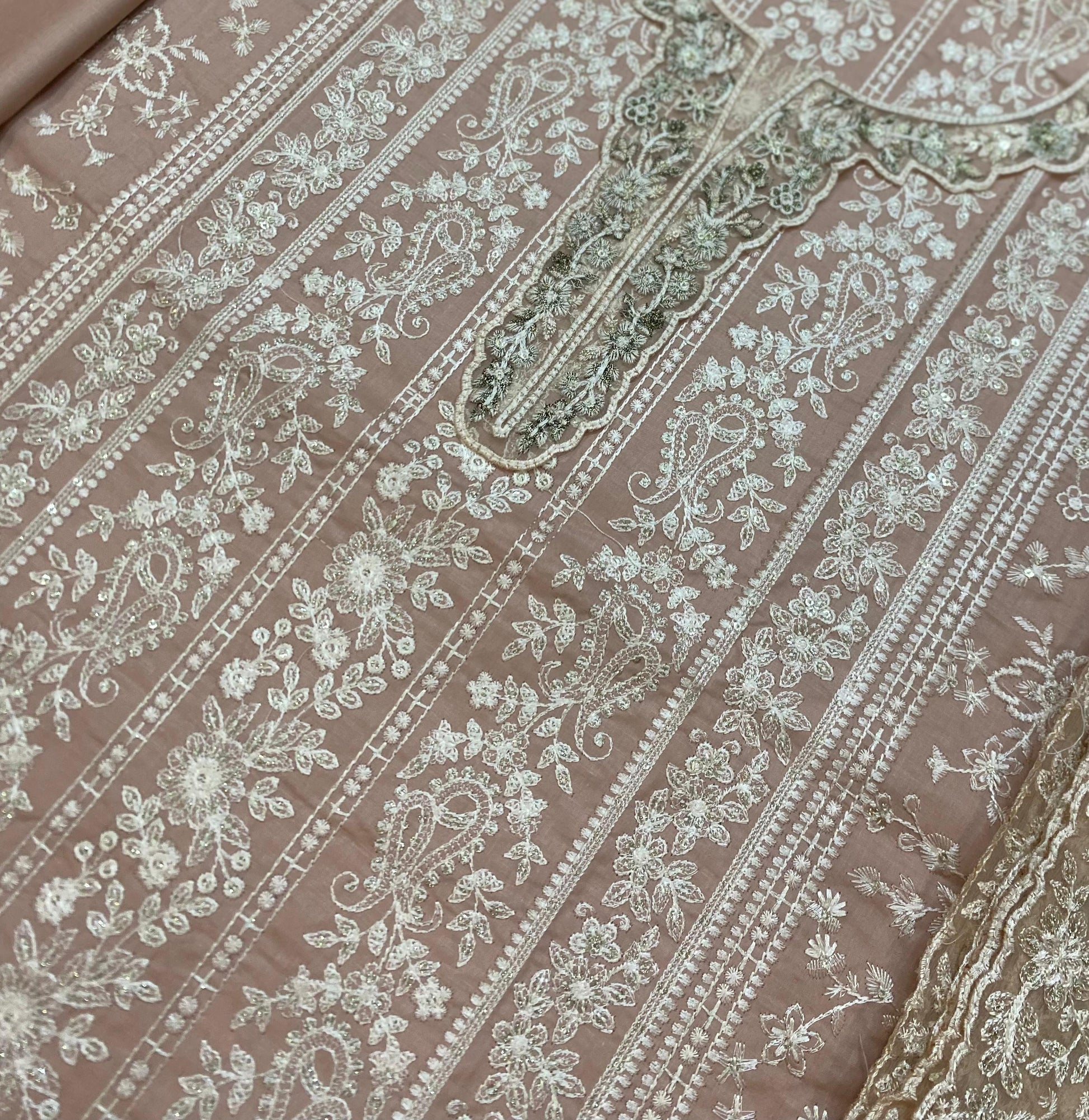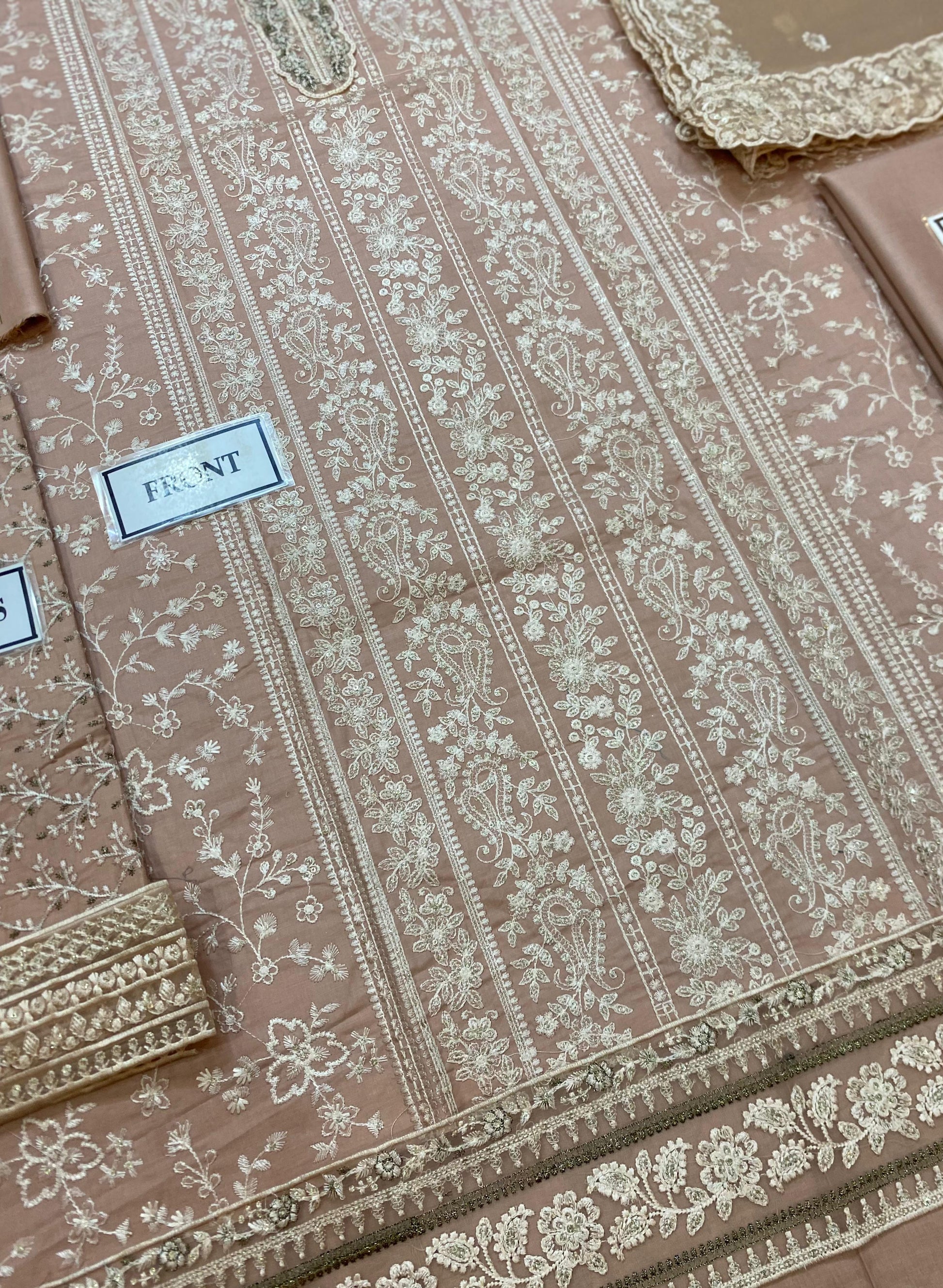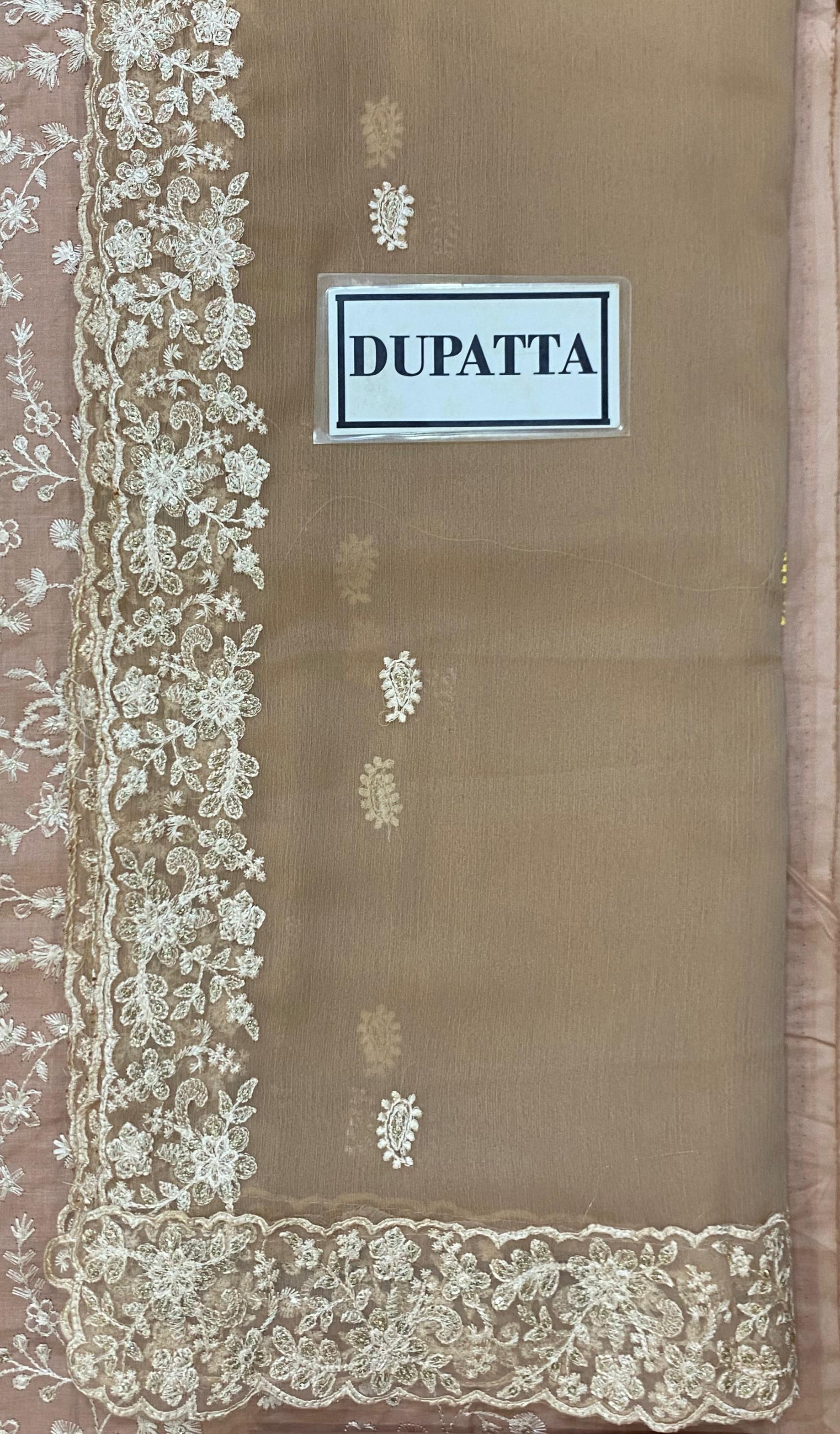 Embroidered Semi Pure Chiffon Dupatta With 4 Side Border