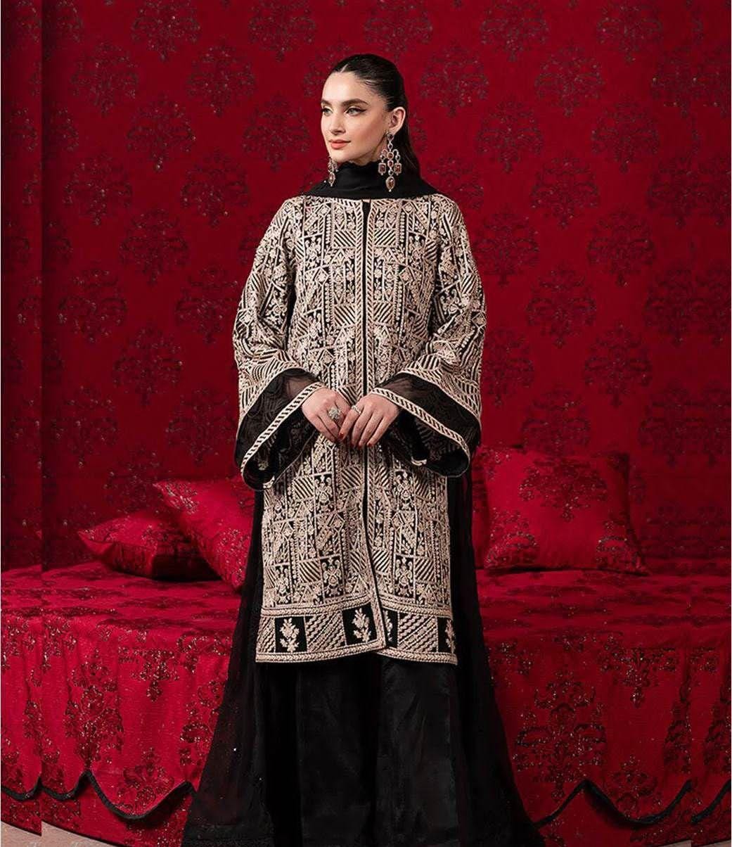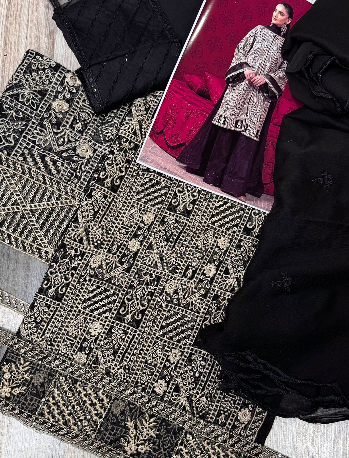 Semi Pure Chiffon Thread Embroidered Sleeves