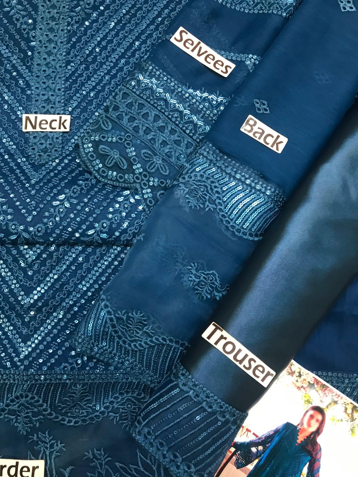 Fully Heavy Embroidery Chiffon Front With Boring Thread & Sequence Embroidery