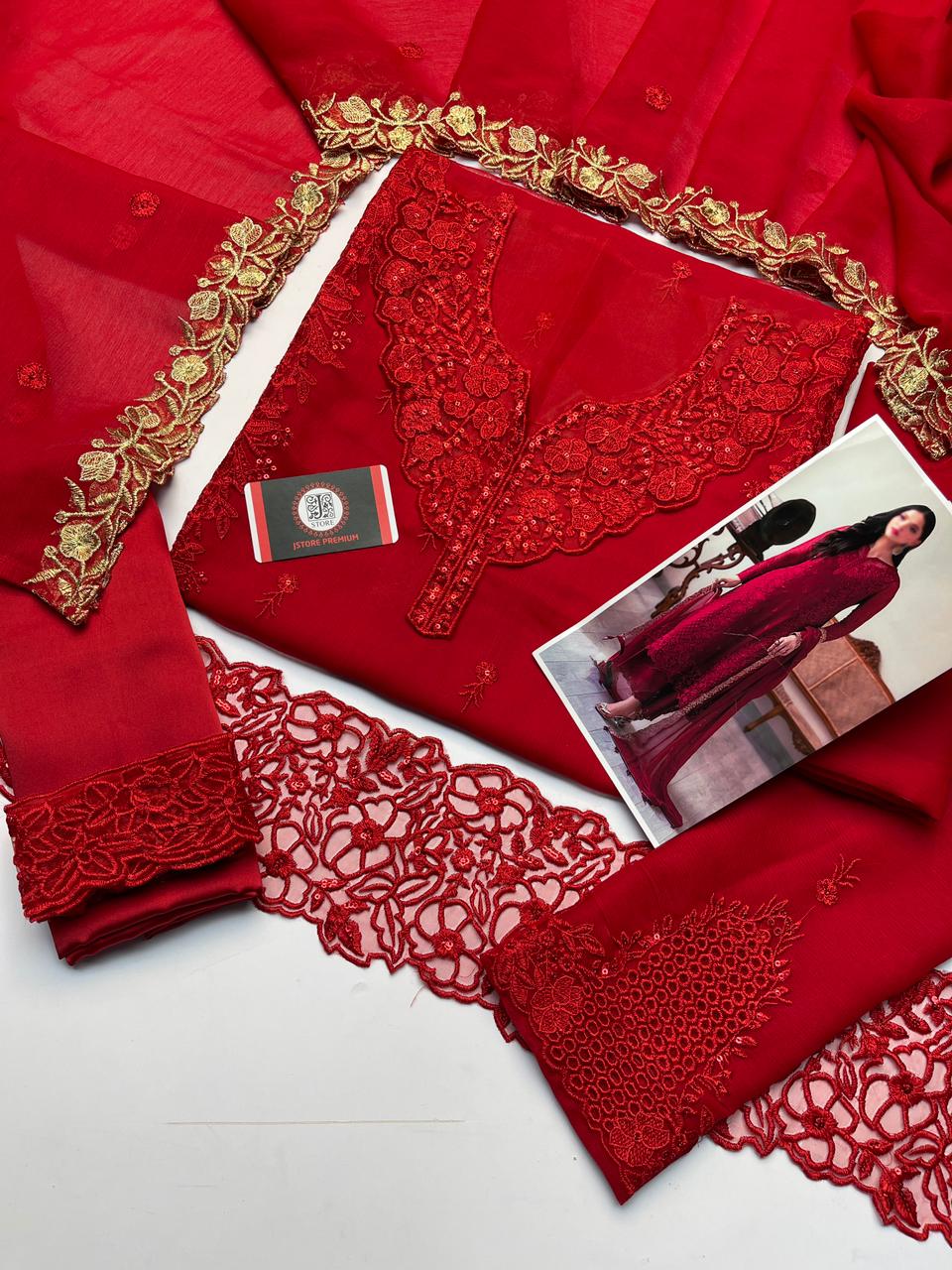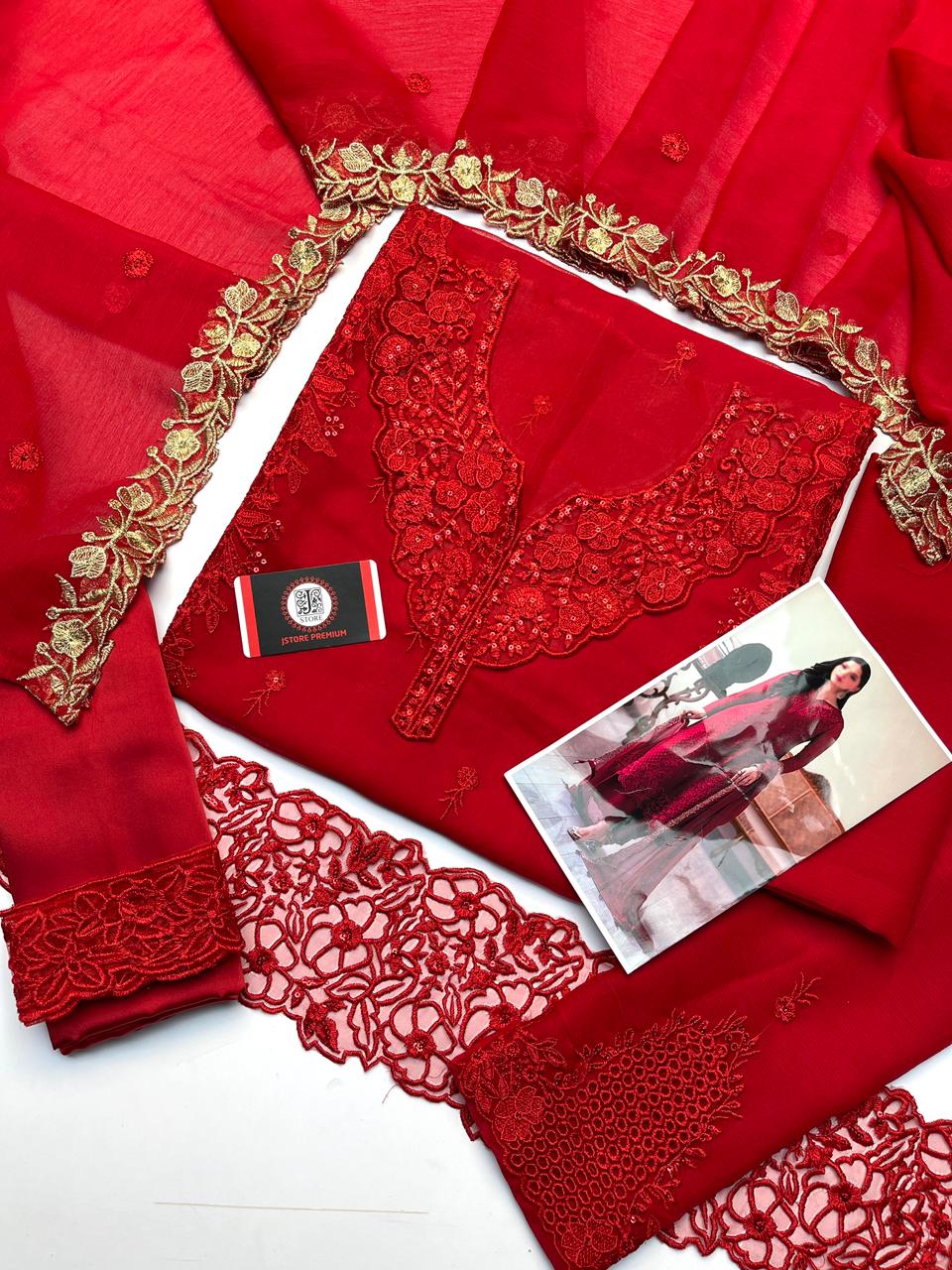 Fully Heavy Embroidery Chiffon Front With Thread & Sequence Embroidery