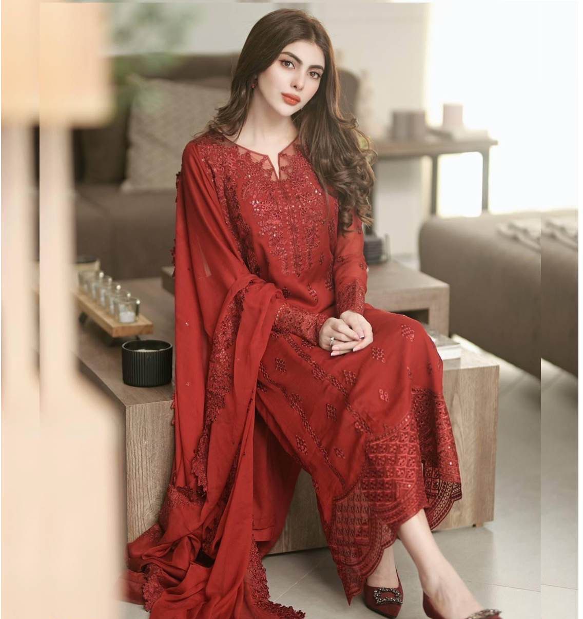 Thread & Sequence Embroidered Organza Neck