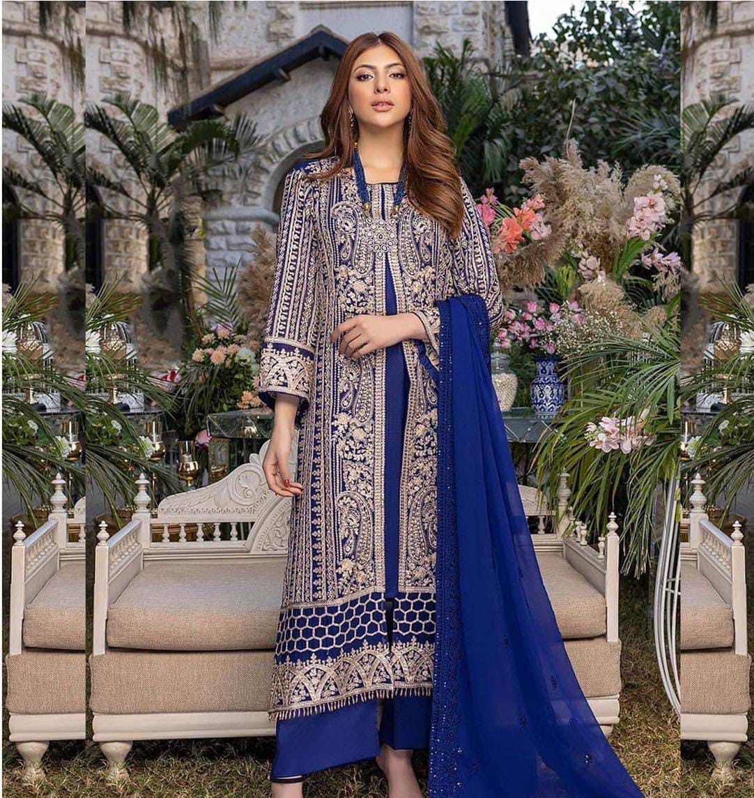 Semi Pure Chiffon Sequence Embroidered Front Border