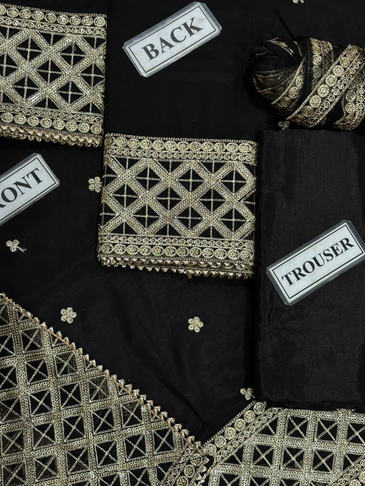 Soft Organza Sequence Embroidered Dupatta with 4 Side lace