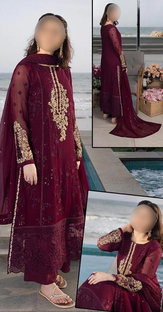 Front Embroidered With Sequence & Chaak Embroidered Bunch