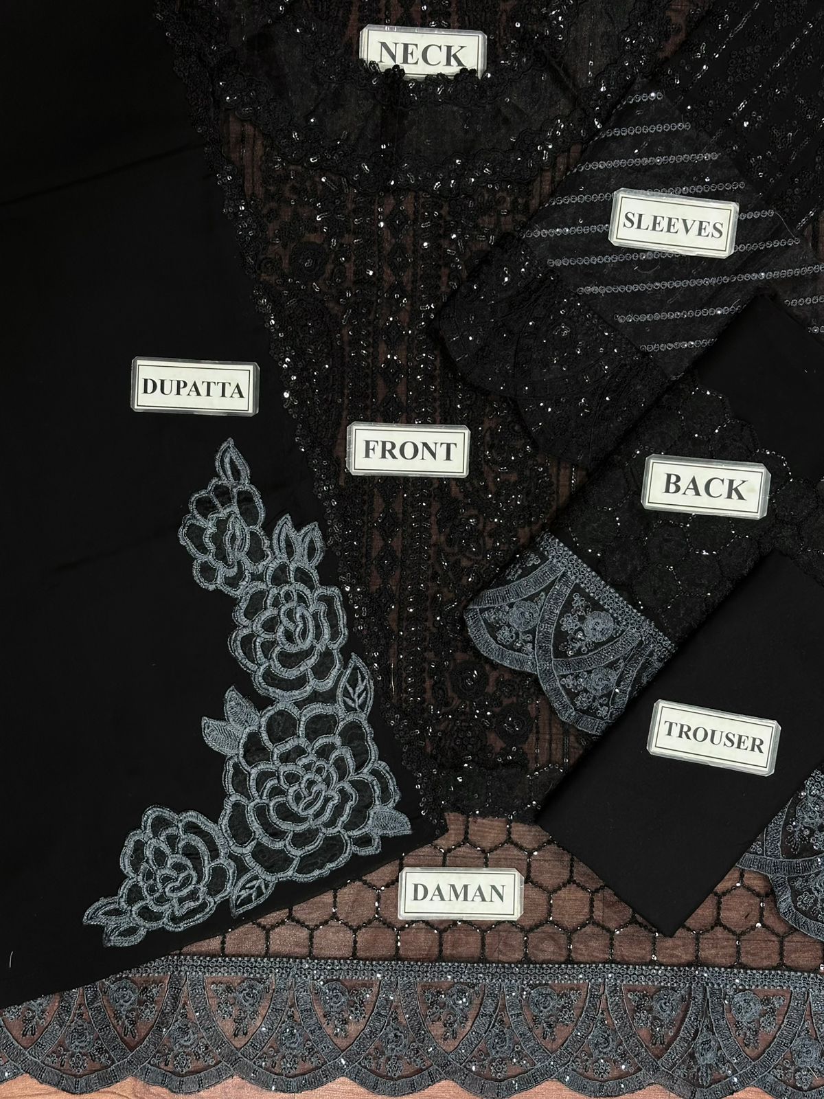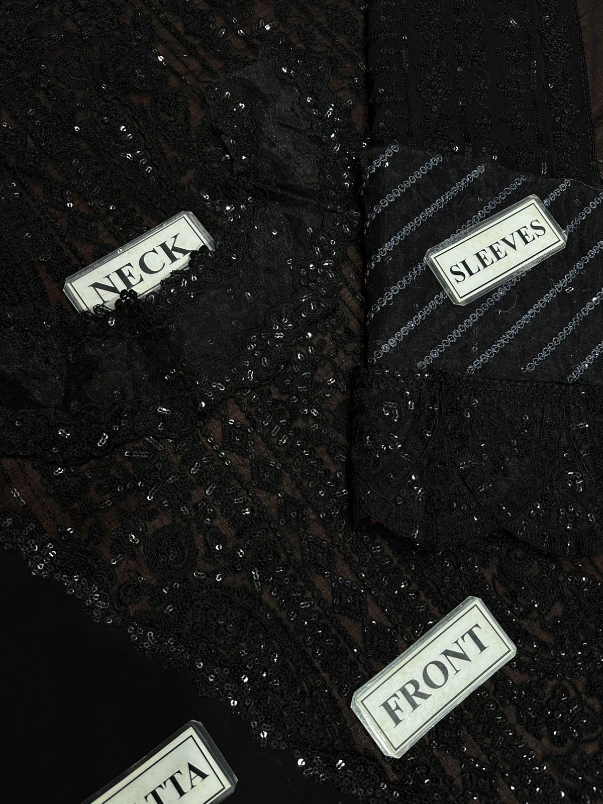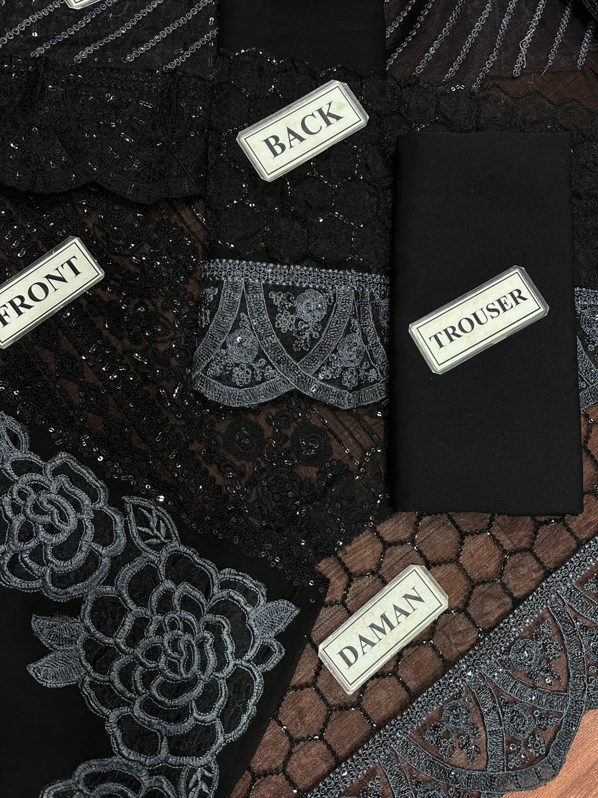 Organza Sequence Embroidered 2 Step Daman Border Front & Back