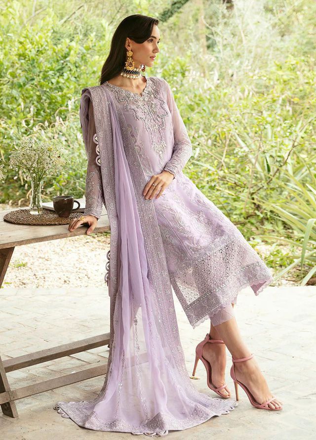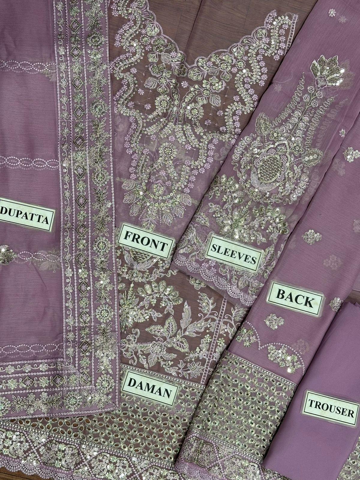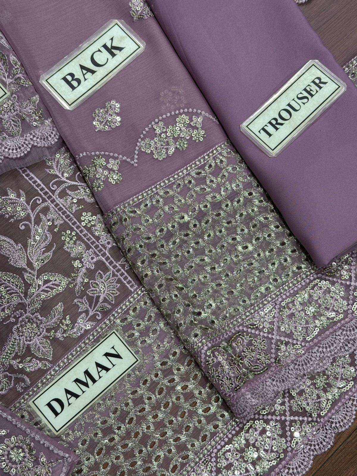 Semi Pure Chiffon Sequence Embroidered Daman Border Front & Back