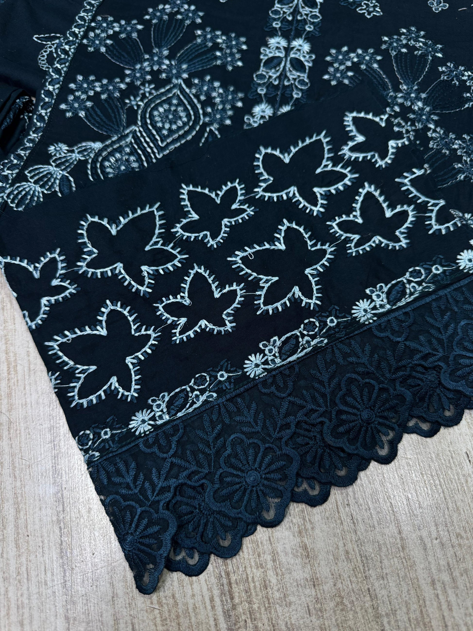 Thread Embroidered Cambric Cotton Back Border