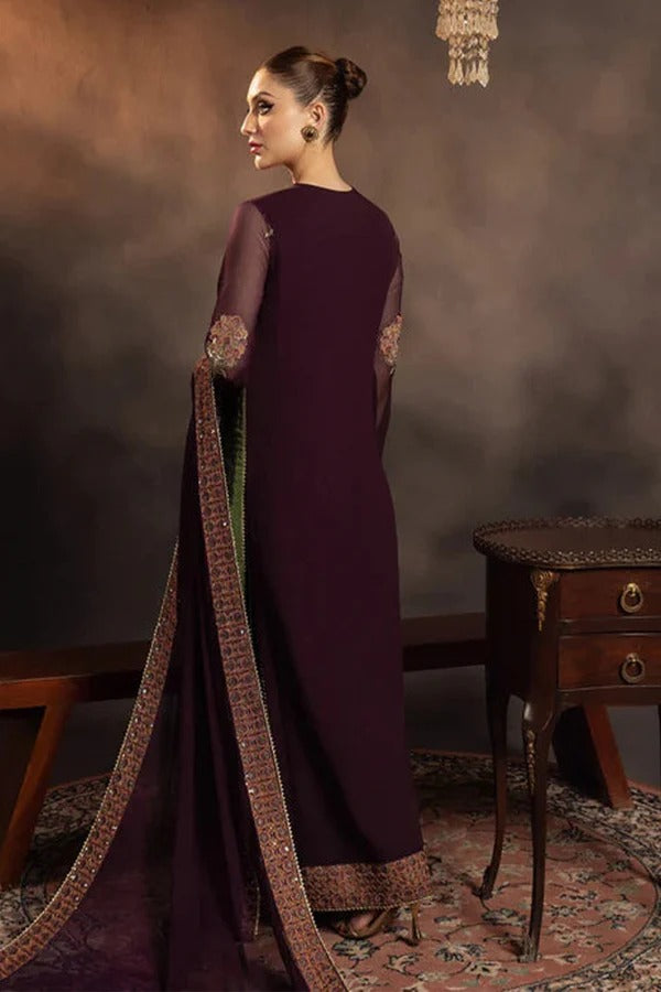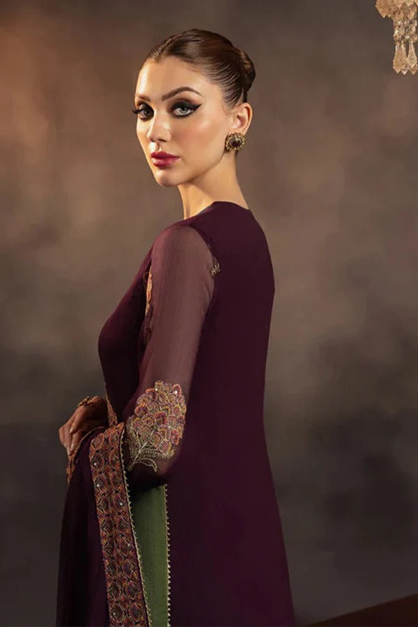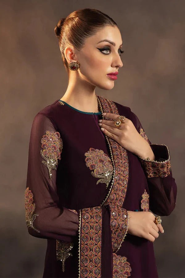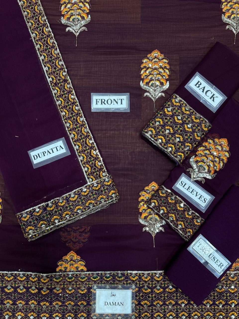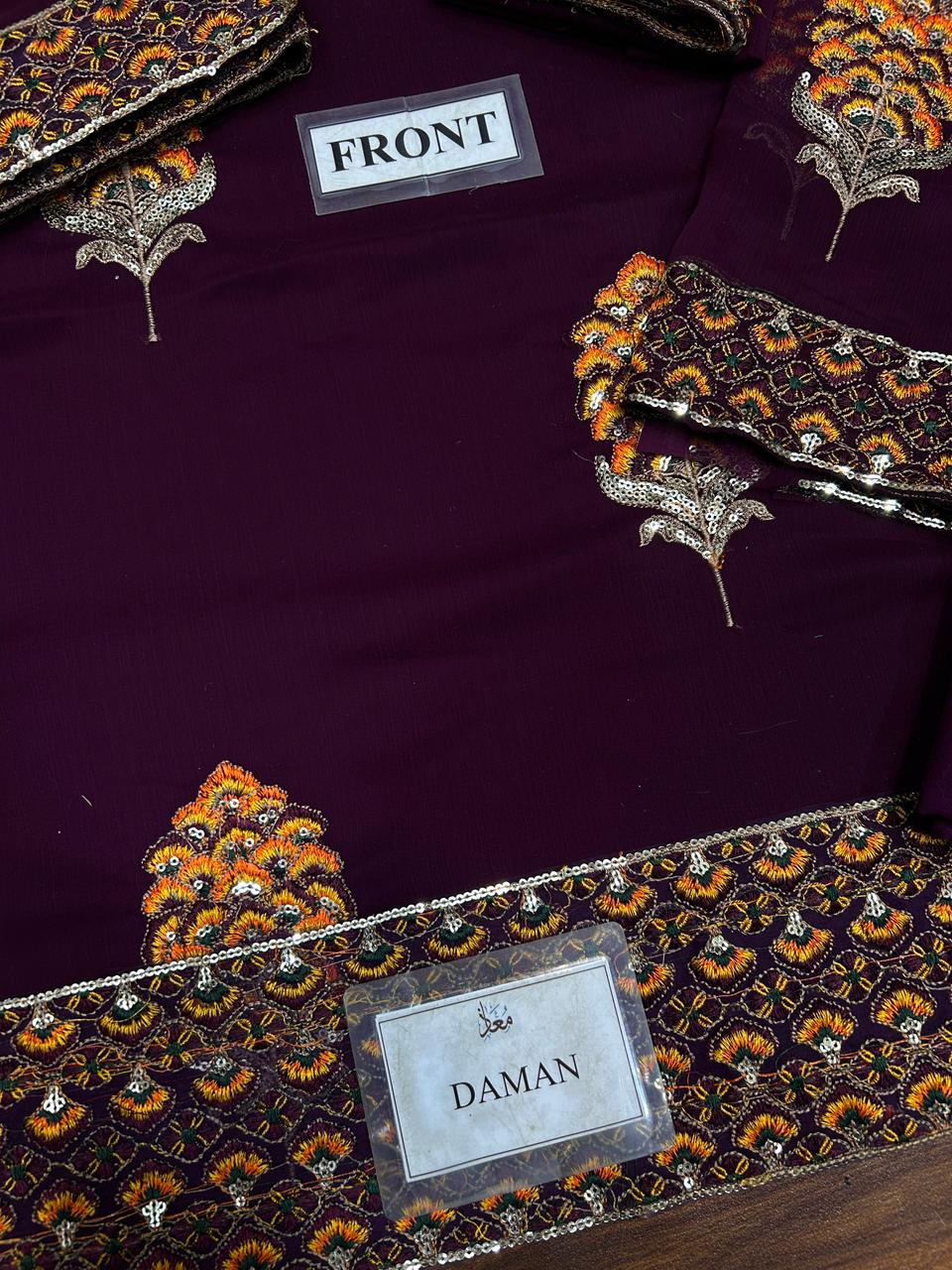 Chiffon Embroidered Front With Embroidered Daman On Organza