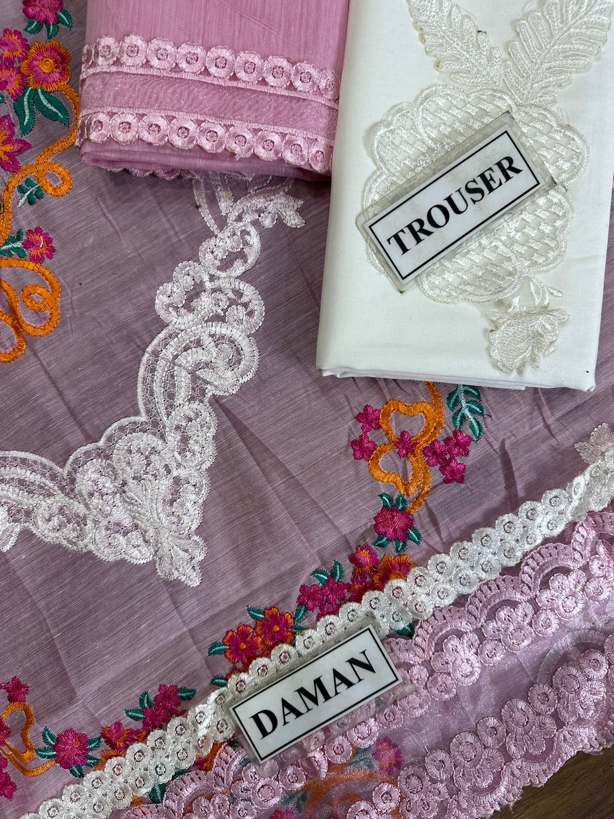 Organza Thread Embroidered Center Daman Lace