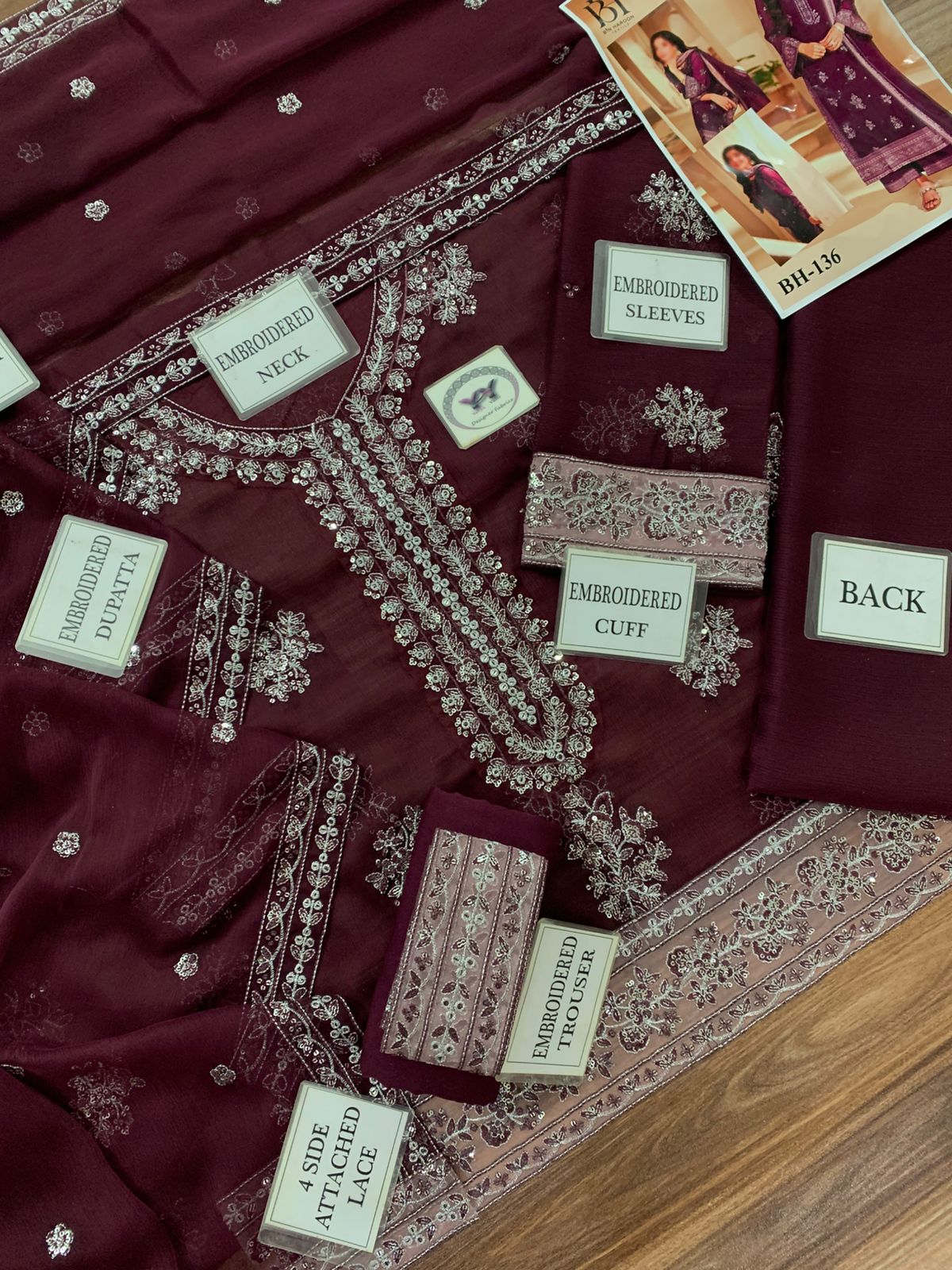 Chiffon Embroidered Front with Embroidered daman On Organza And choke pati given