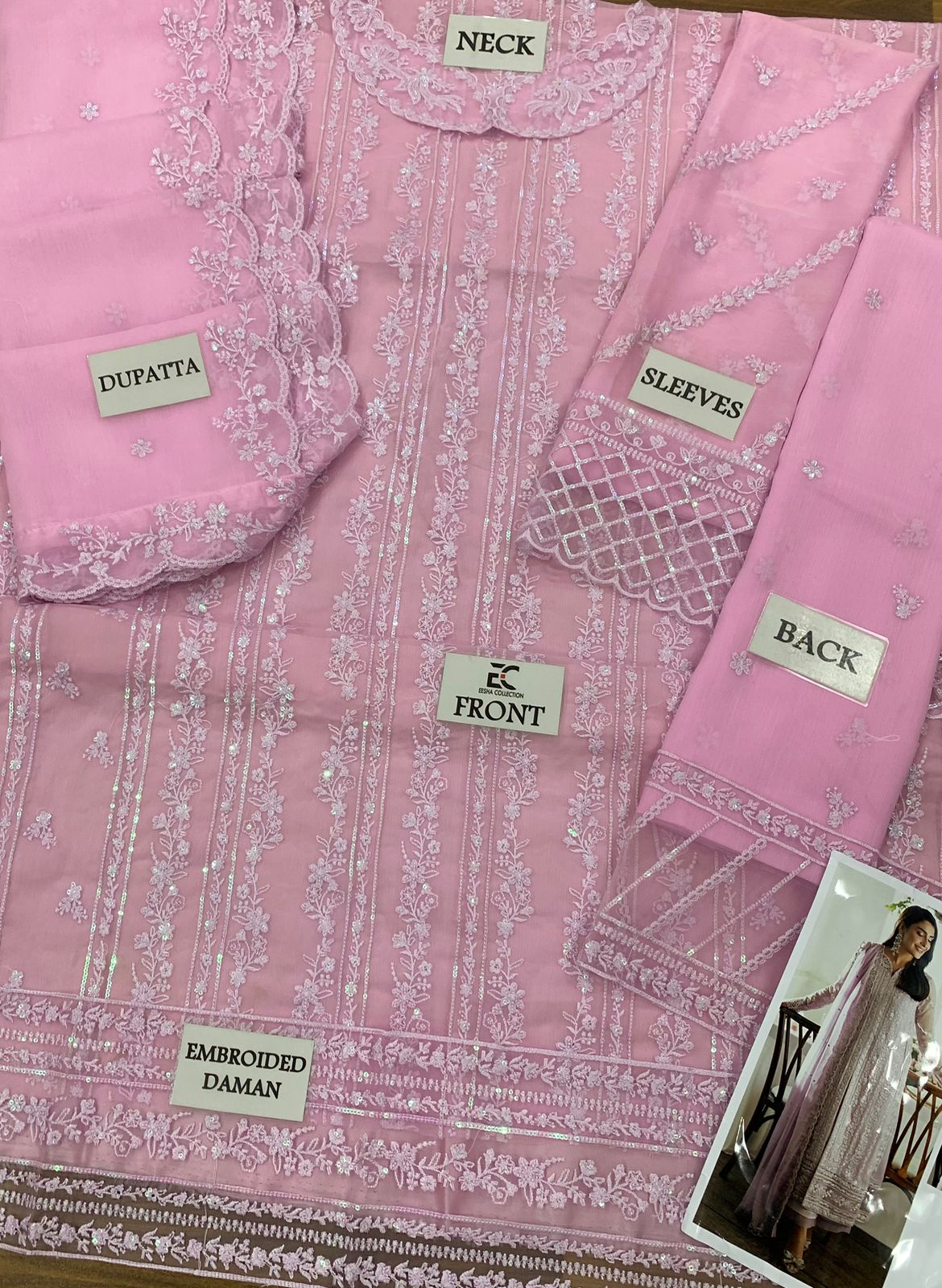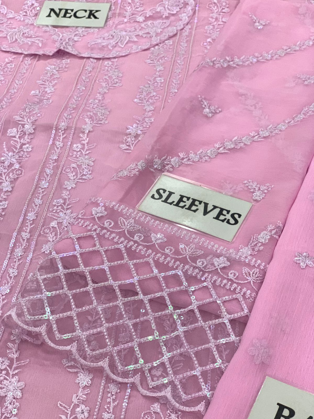*chiffon fully heavy embroidered spengle work front with heavy embroidered spengle work daman border with cutwork*