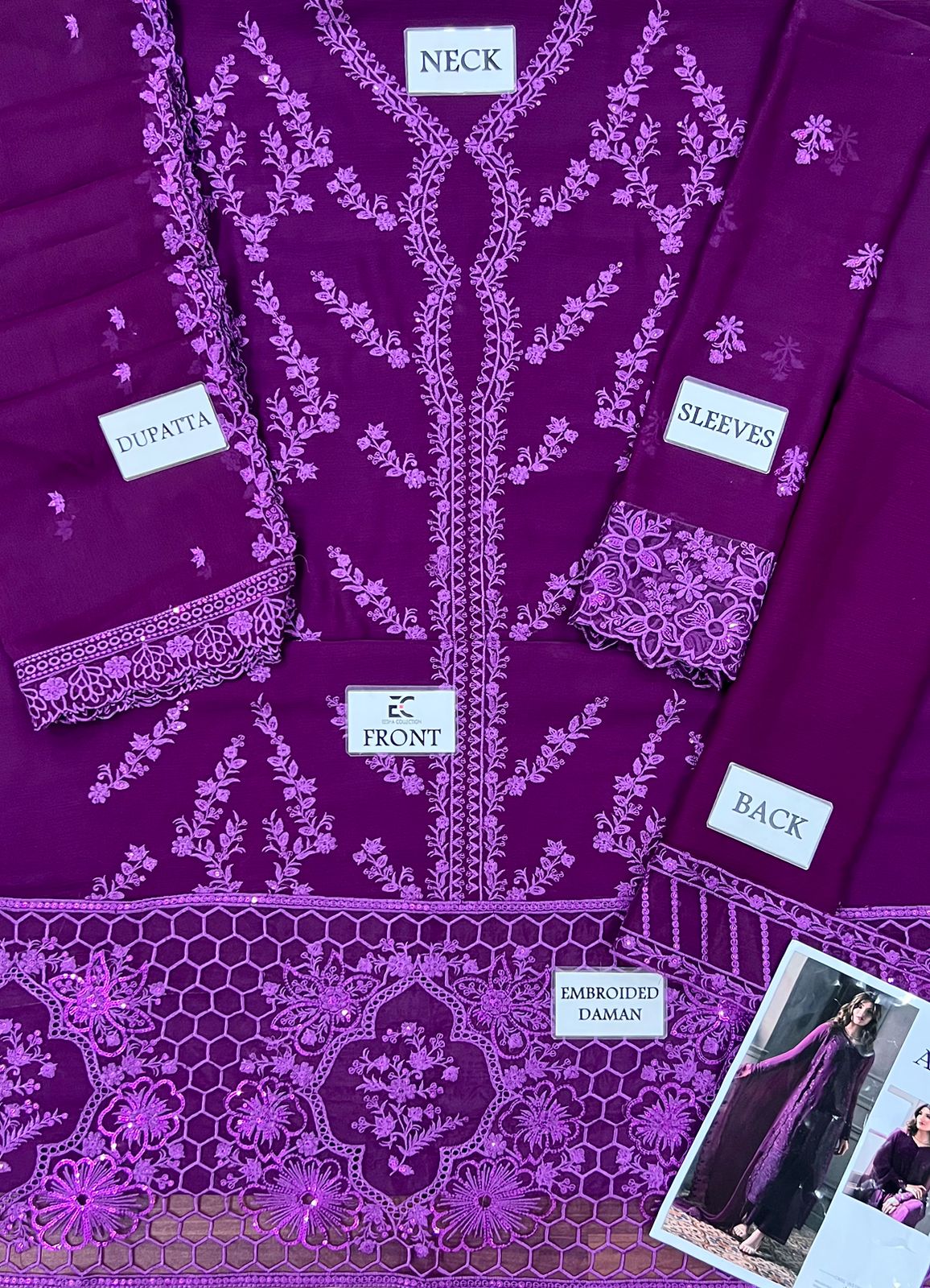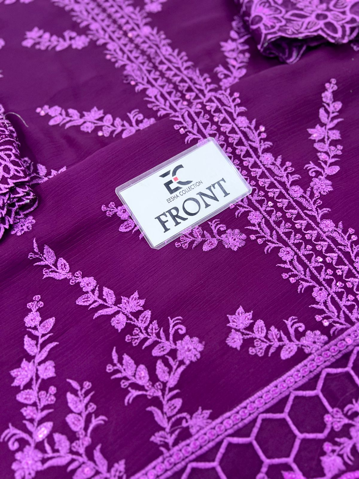 *Chiffon fully heavy embroidered spengle work front with heavy embroidered spengle work daman boarder on fabric*