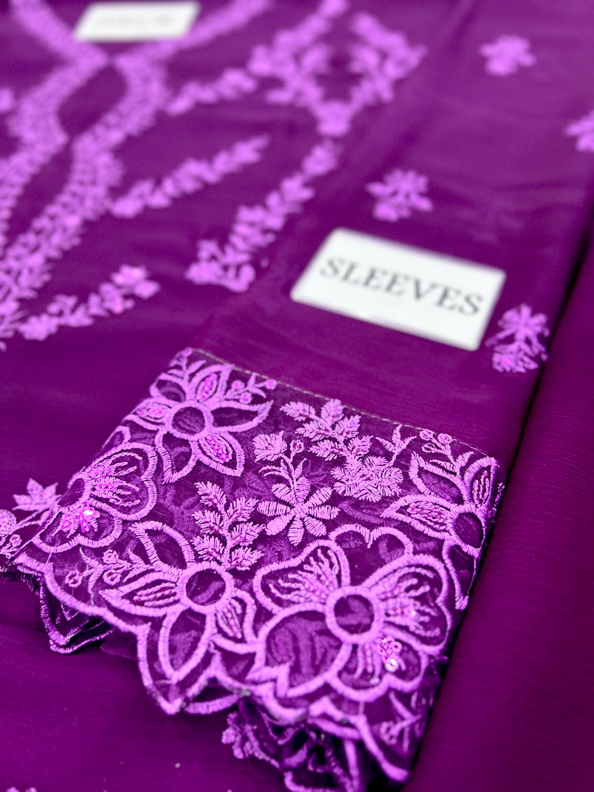 *chiffon heavy embroidered spengle work sleeves with fully heavy embroidered cutwork border Attached*