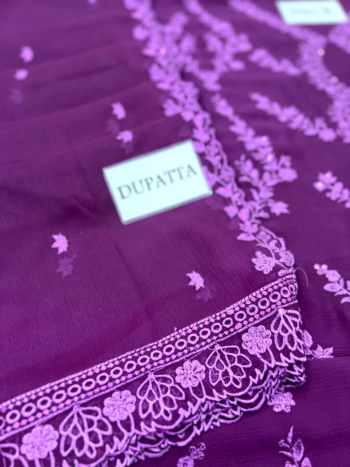 *chiffon fully heavy embroidered spengle work dupatta with embroidered spengle cutwork borders*