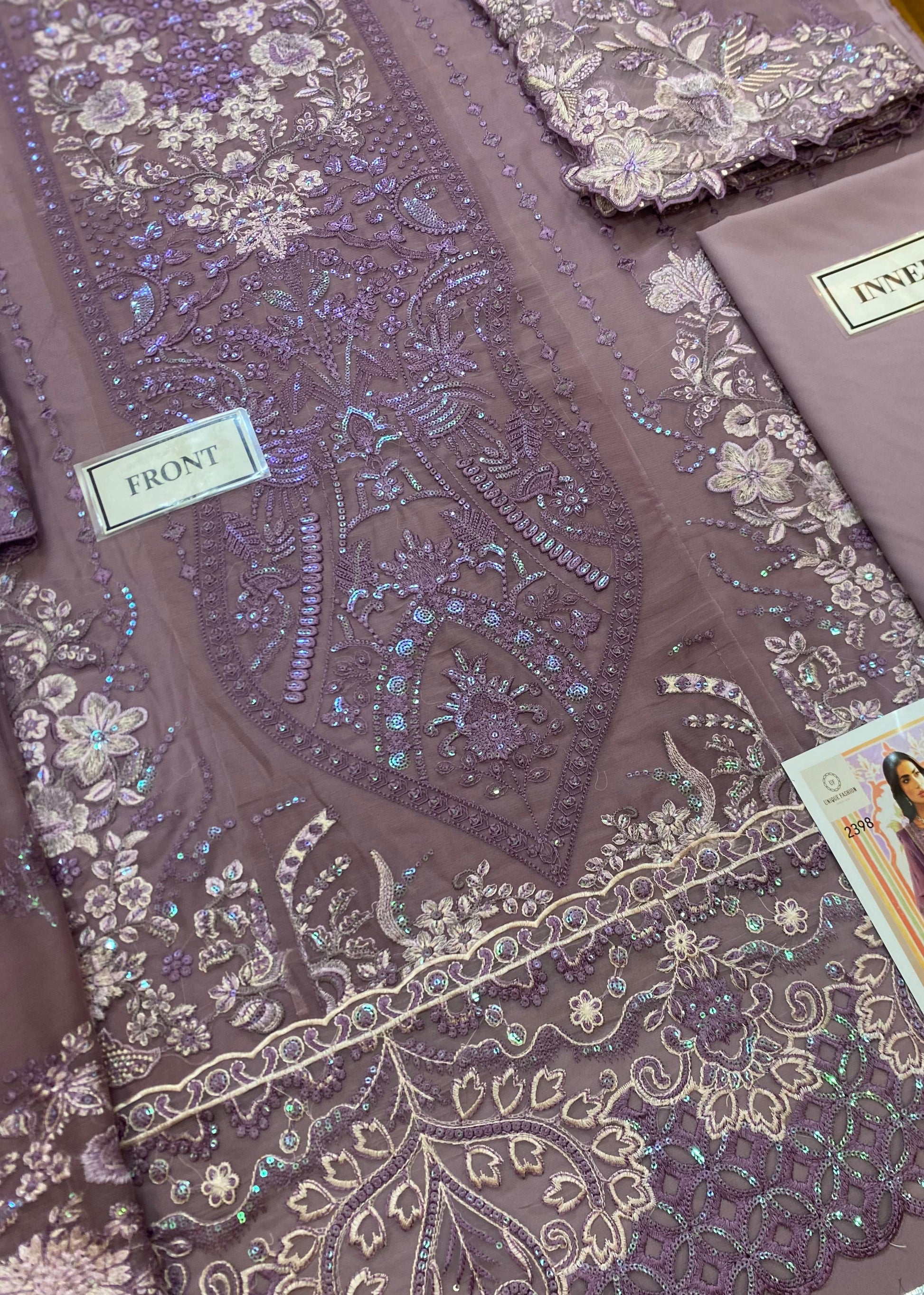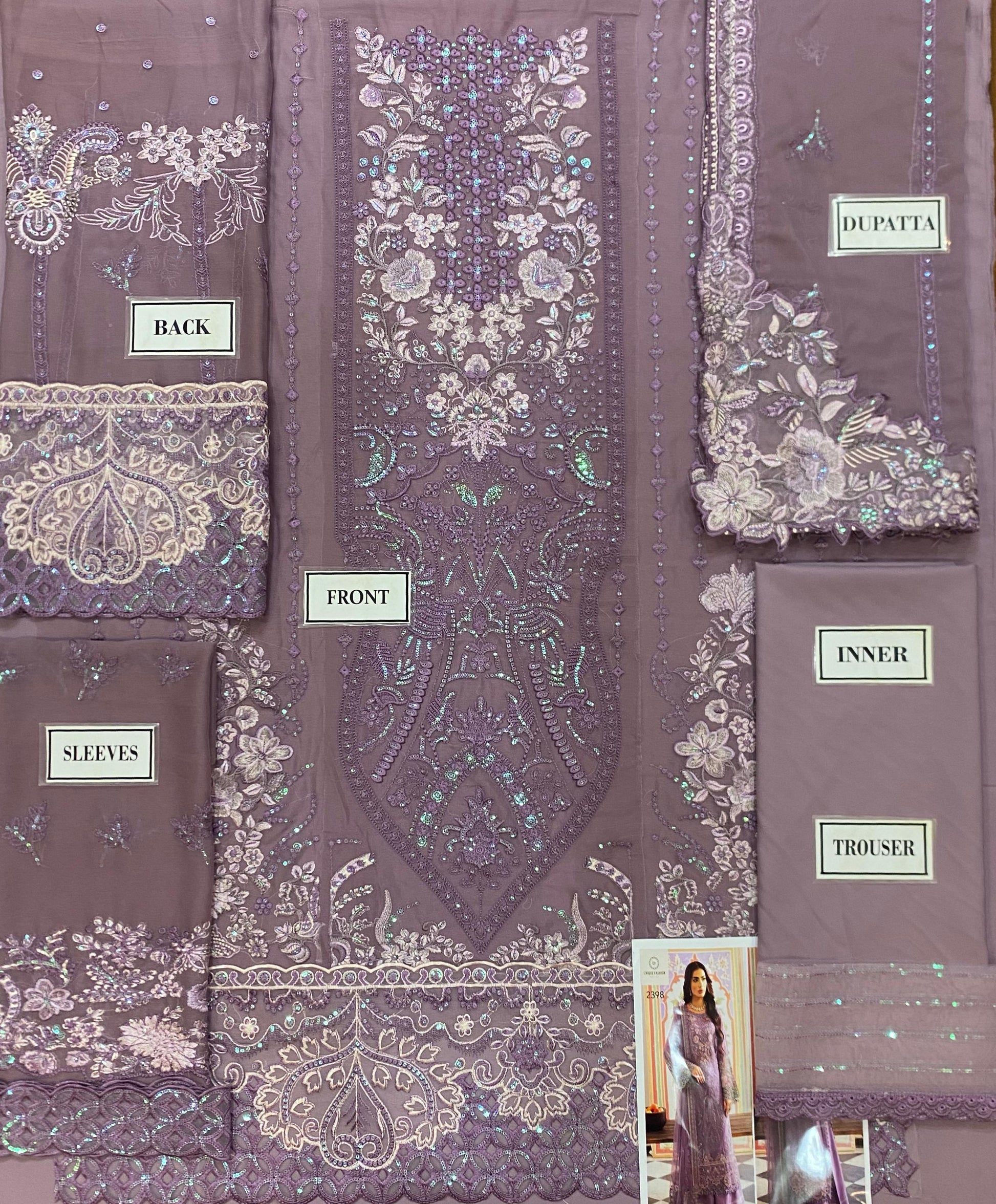 Semi pure chiffon embroidered dupatta with 4 sides border and 4 corners bunches