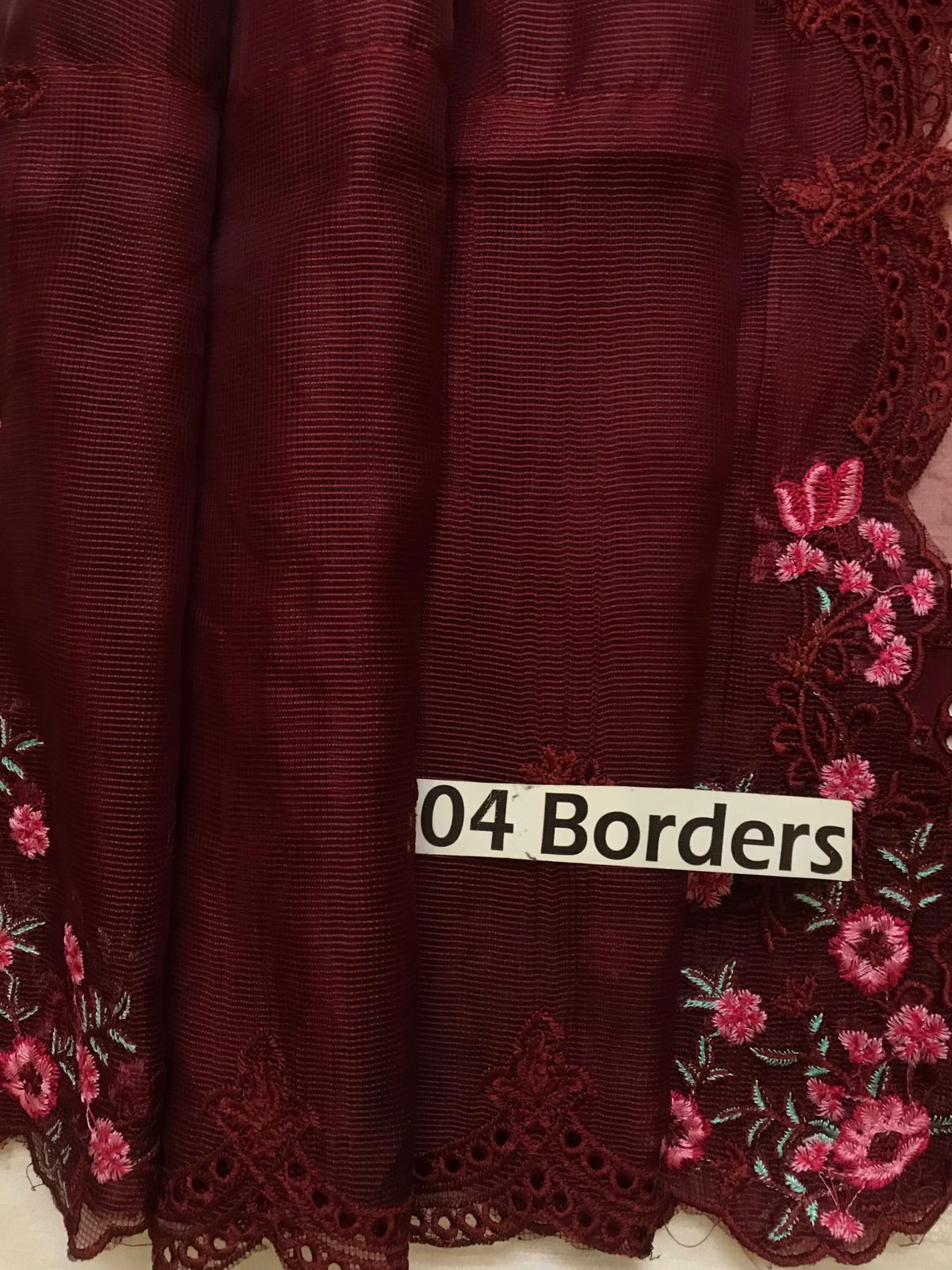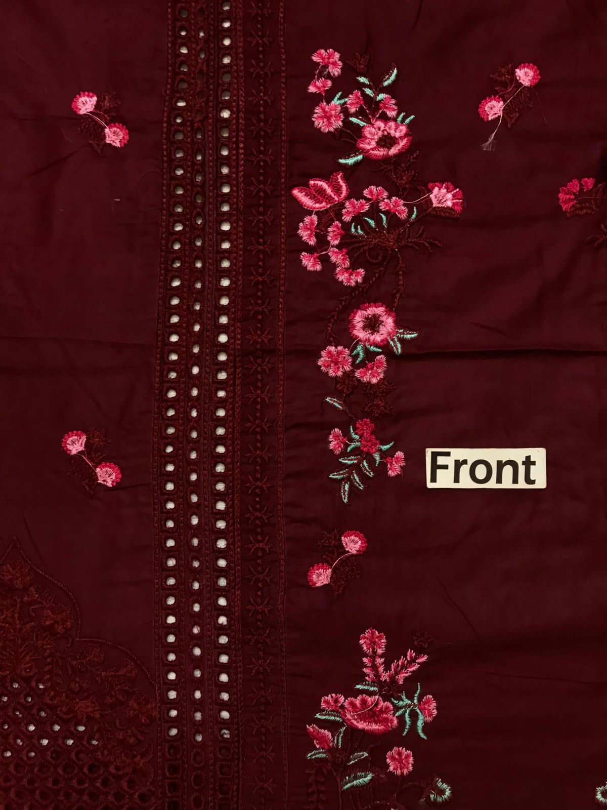 Heavy Embroidered Front border is on fabric with cutwork
