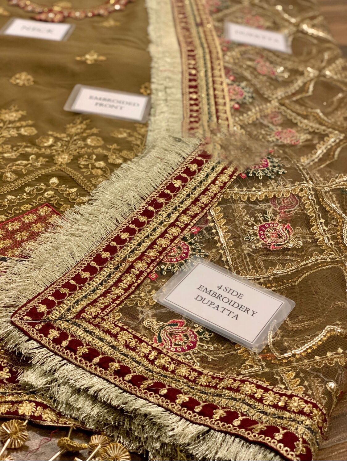 *chiffon fully embroidered spengle work back with heavy embroidered spengle work back daman boarder*