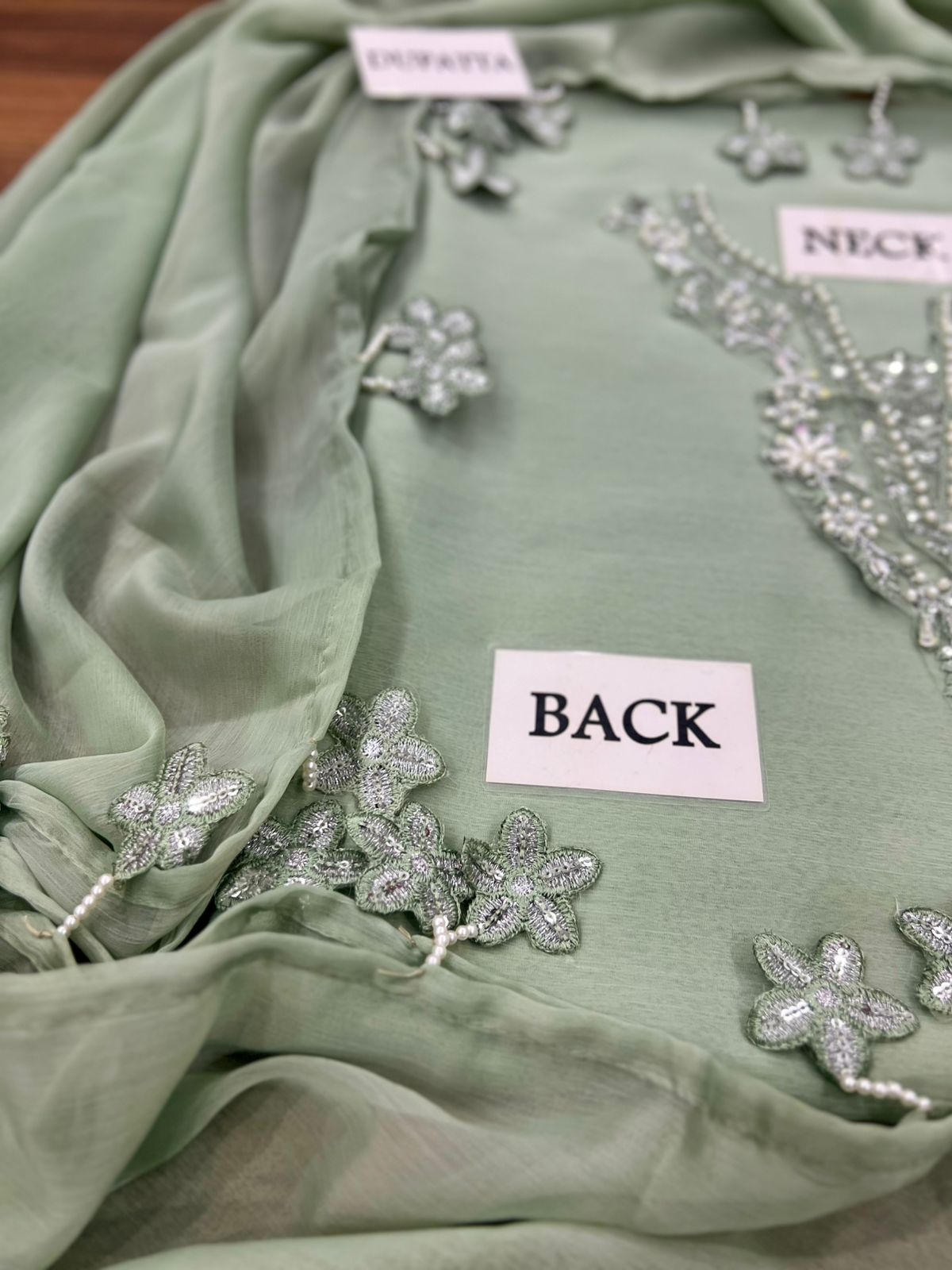 CHIFFON DYED FRONT ALONG WITH EMBROIDERED NECK PATCH WITH HEAVY ADDA WORK