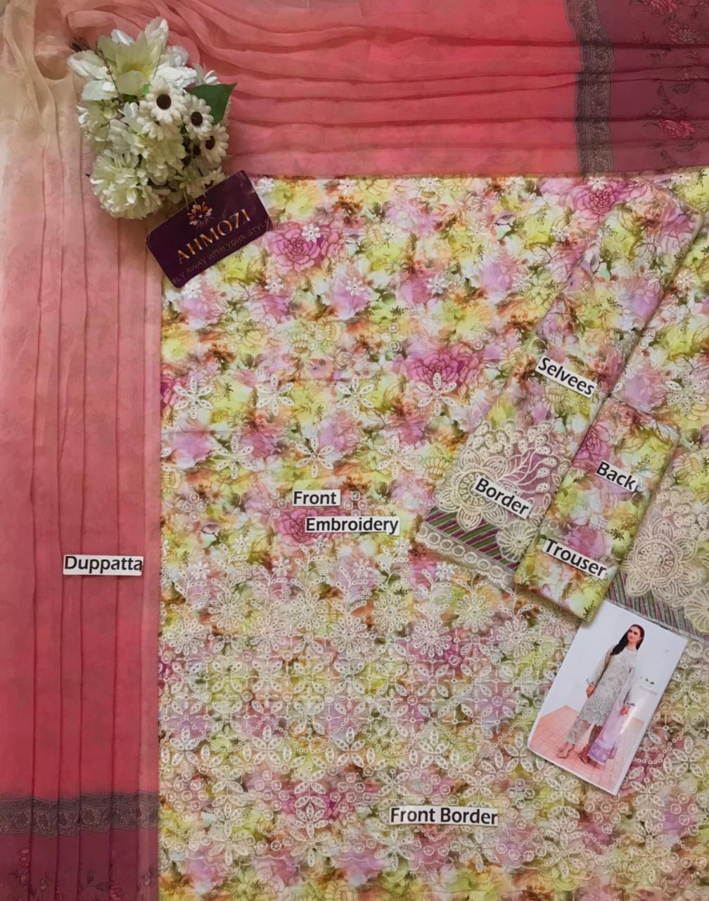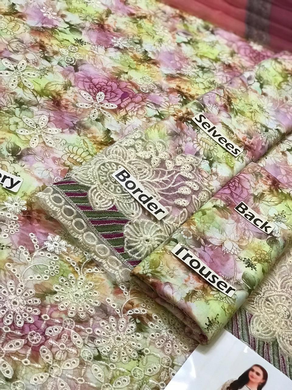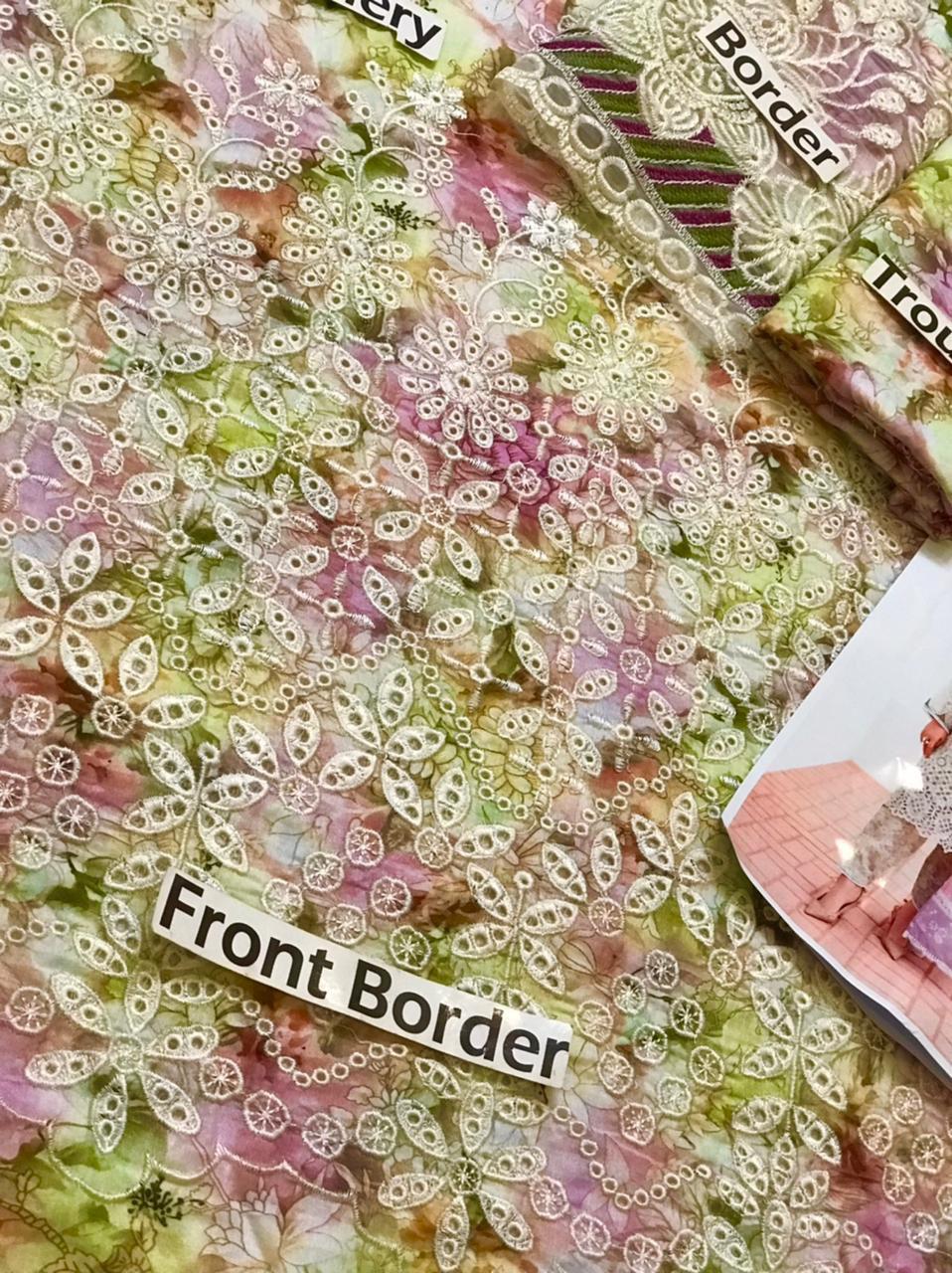 Heavy Embroidered Front Border with Chicken kari Work on Fabric