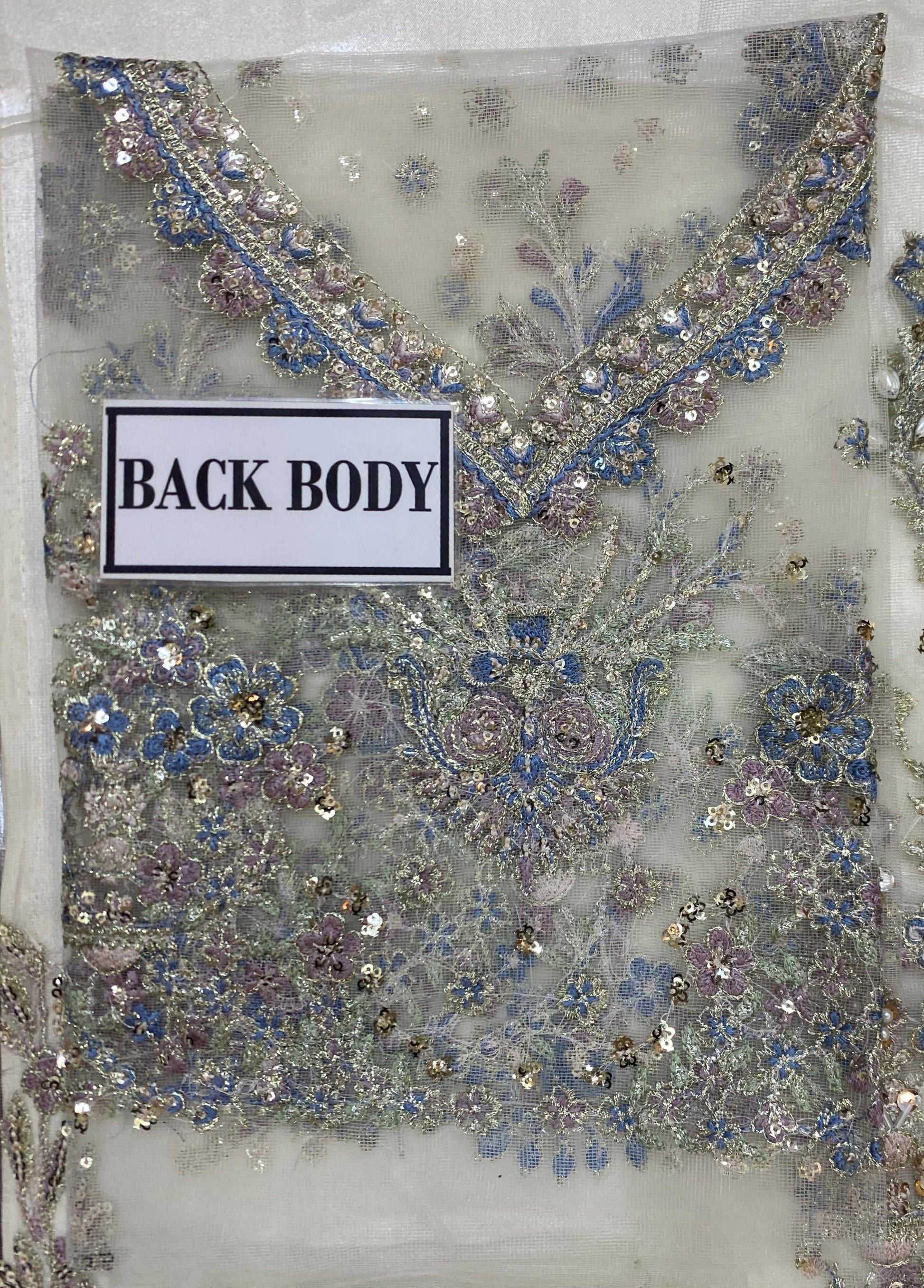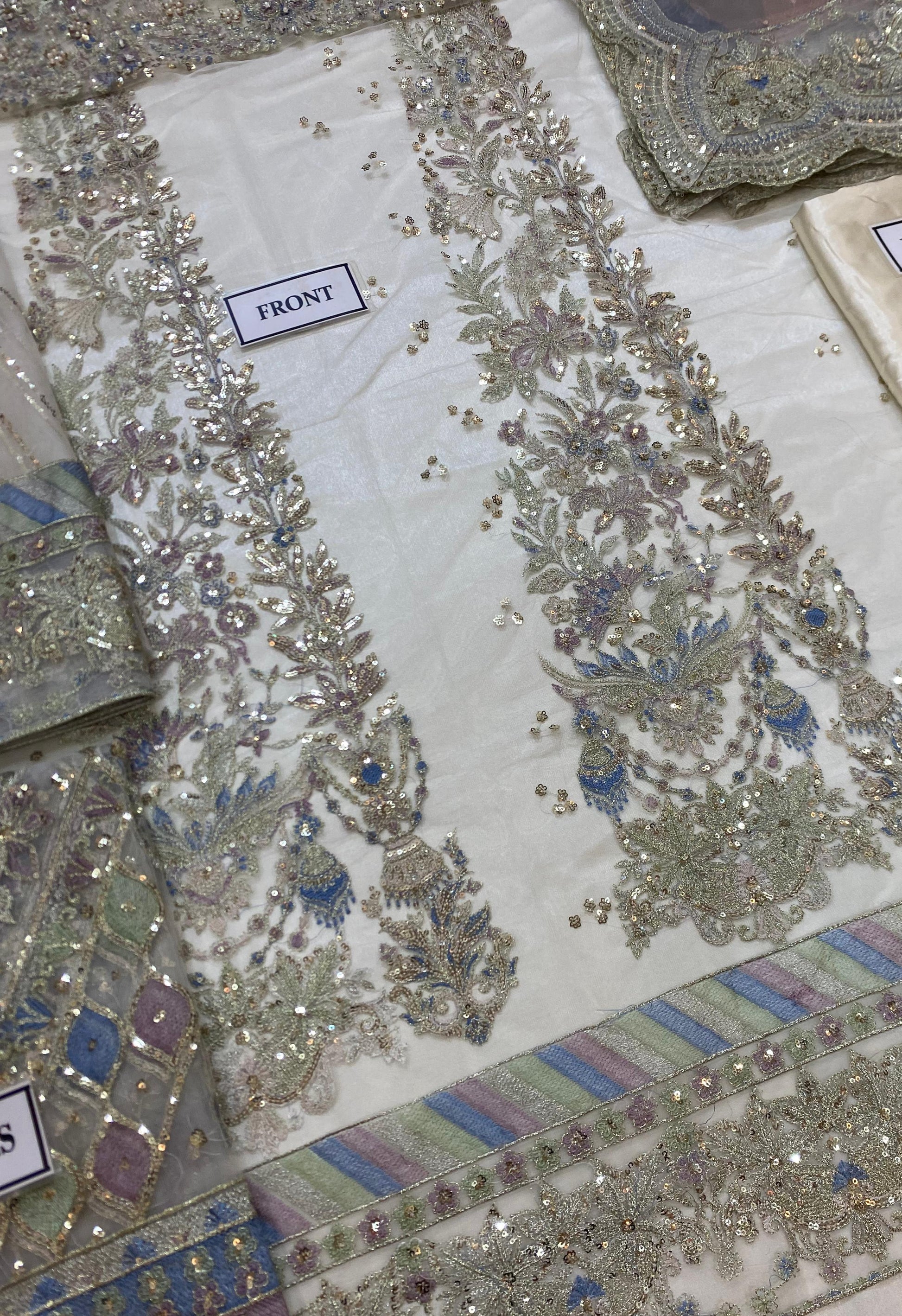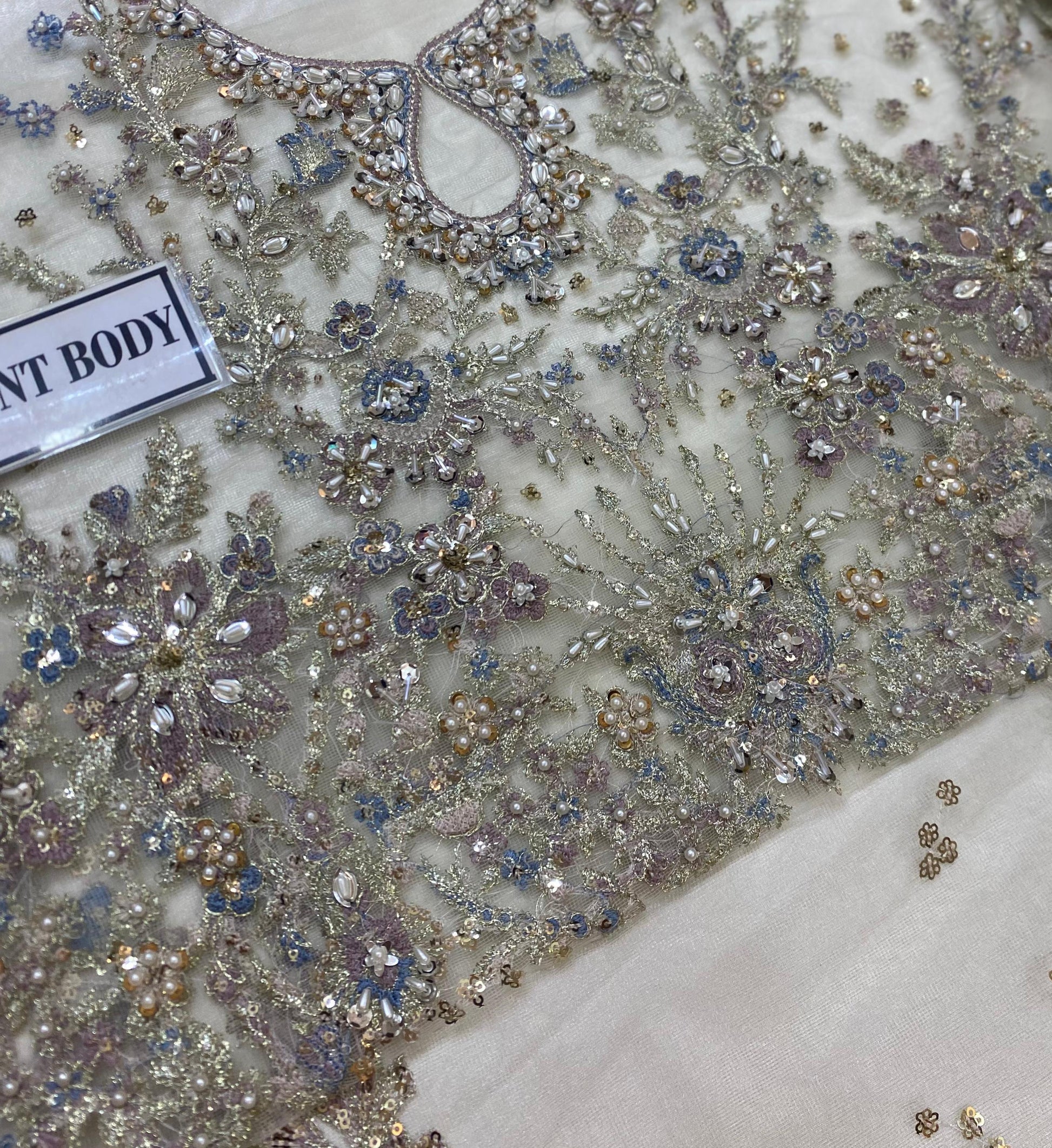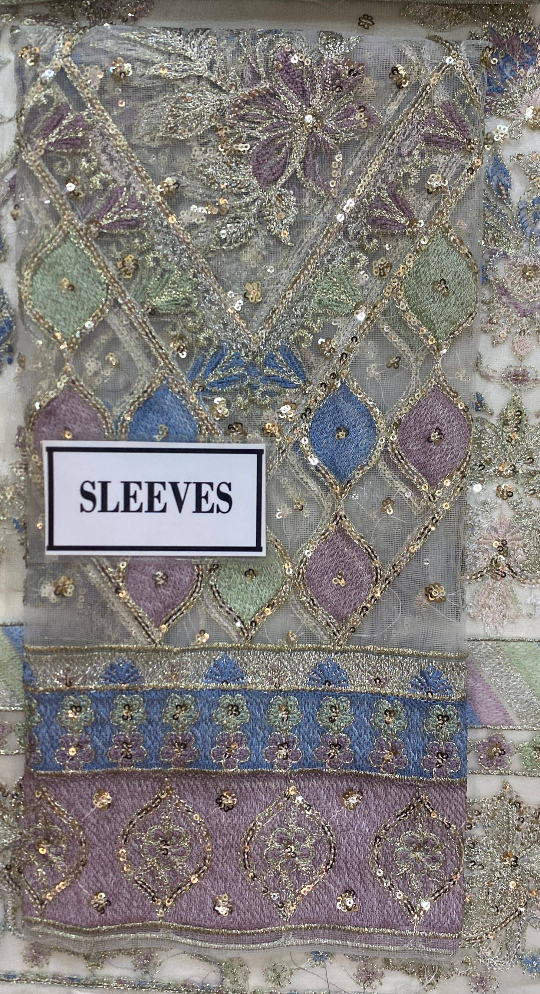 Embroidered And Digital Print net dupatta with pallu and 4 sides border