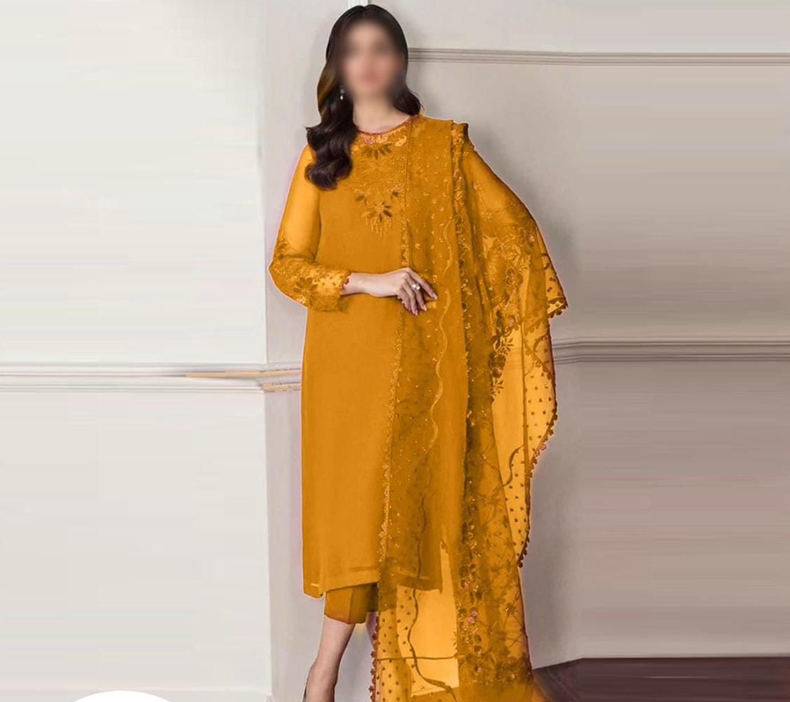 Heavy Embroidered Organza Dupatta With Hanging Tussels