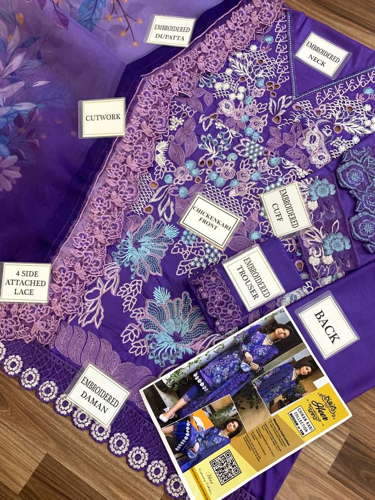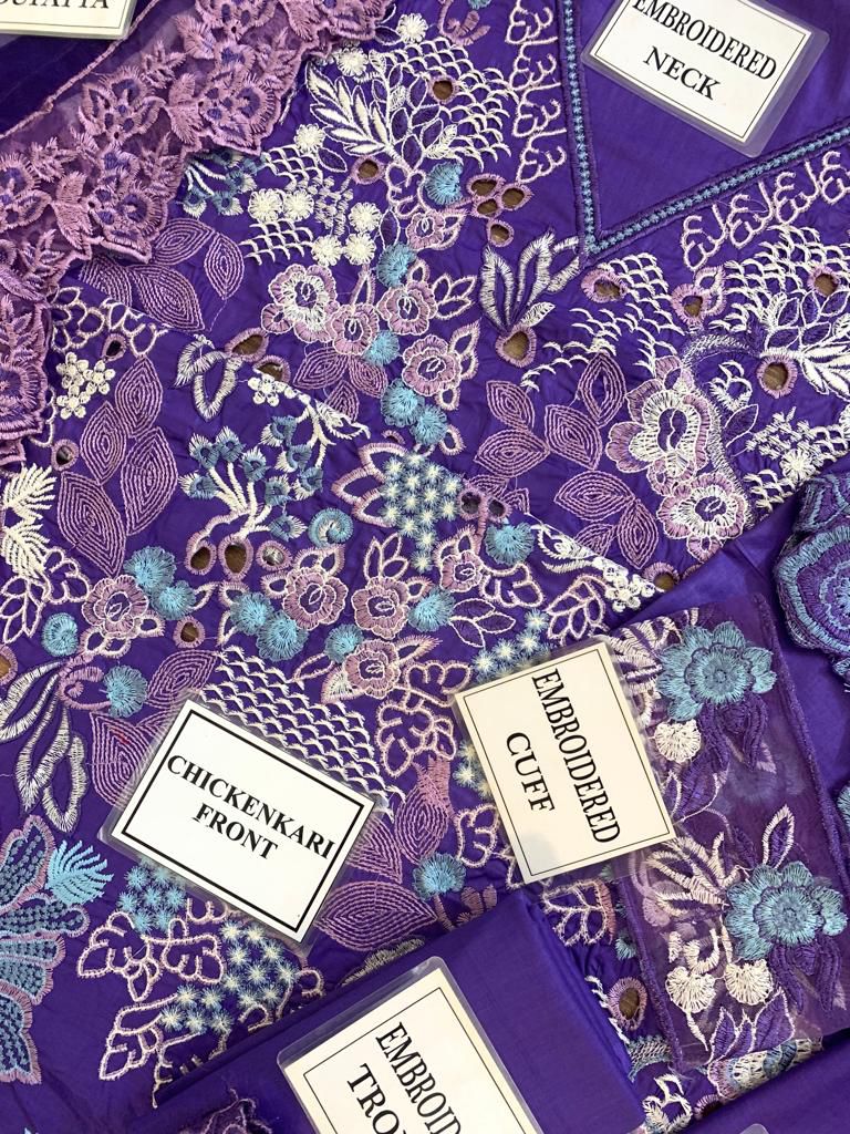 Front Daman Heavy Embroidered chicken Kari work on Organza