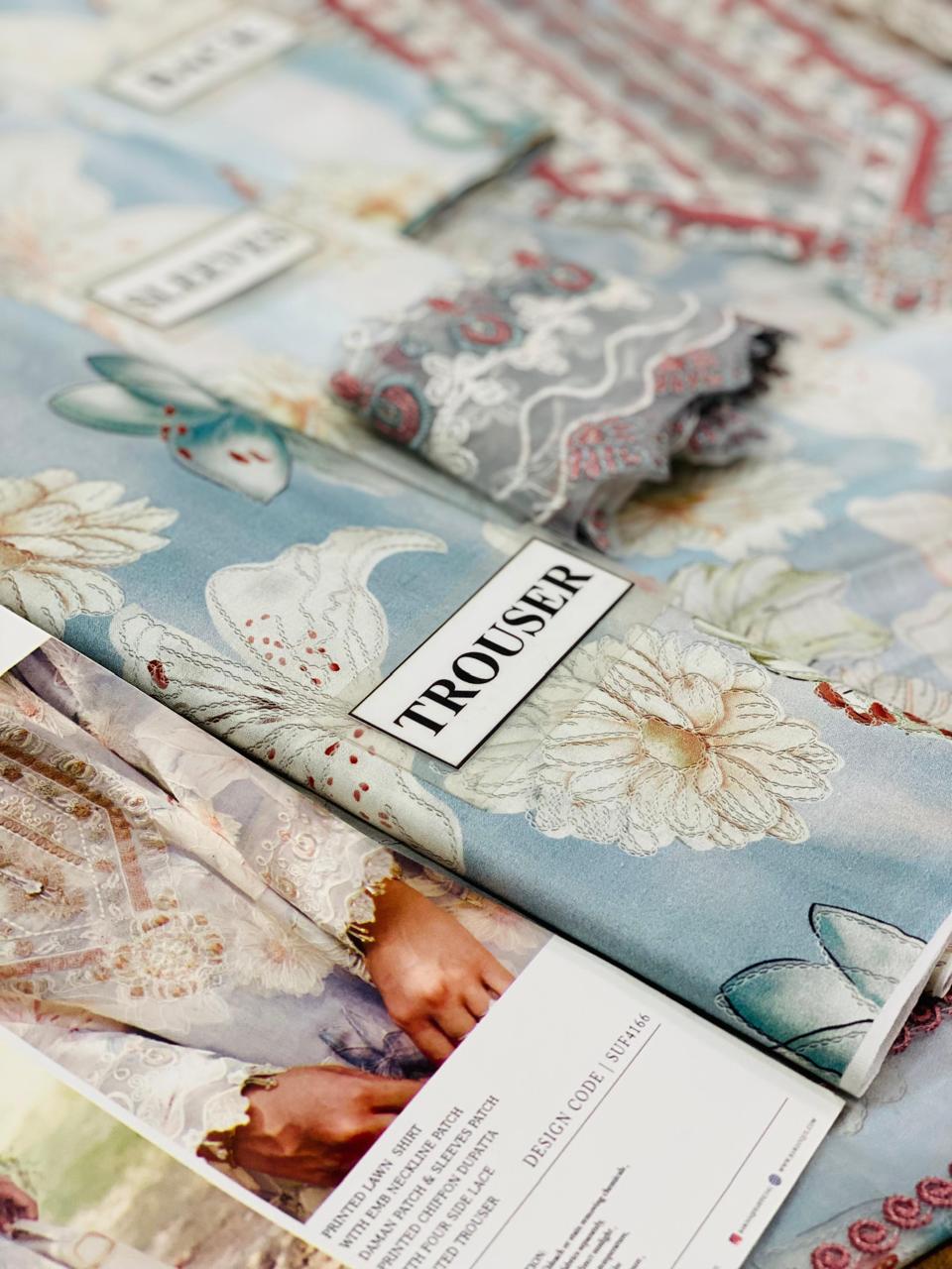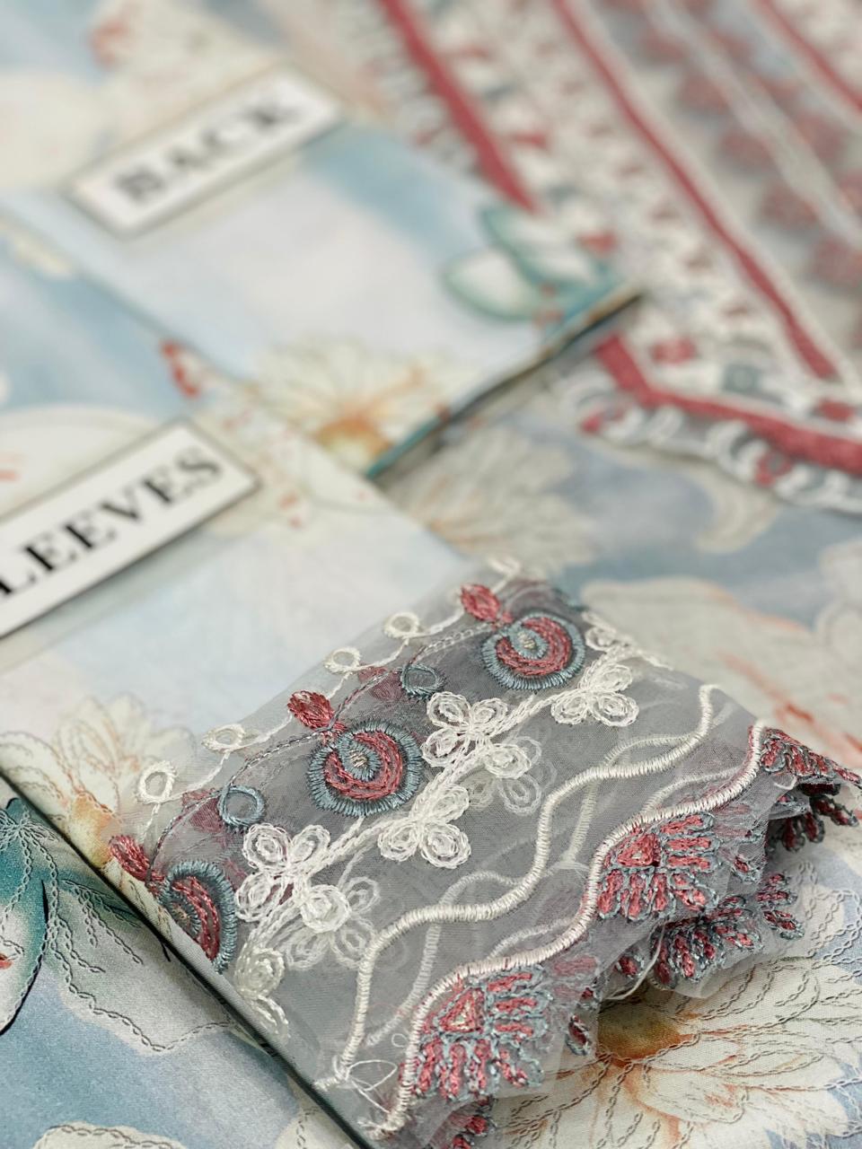 PRINTED LAWN SLEEVES ALONG WITH EMBROIDERED CUFF PATCH