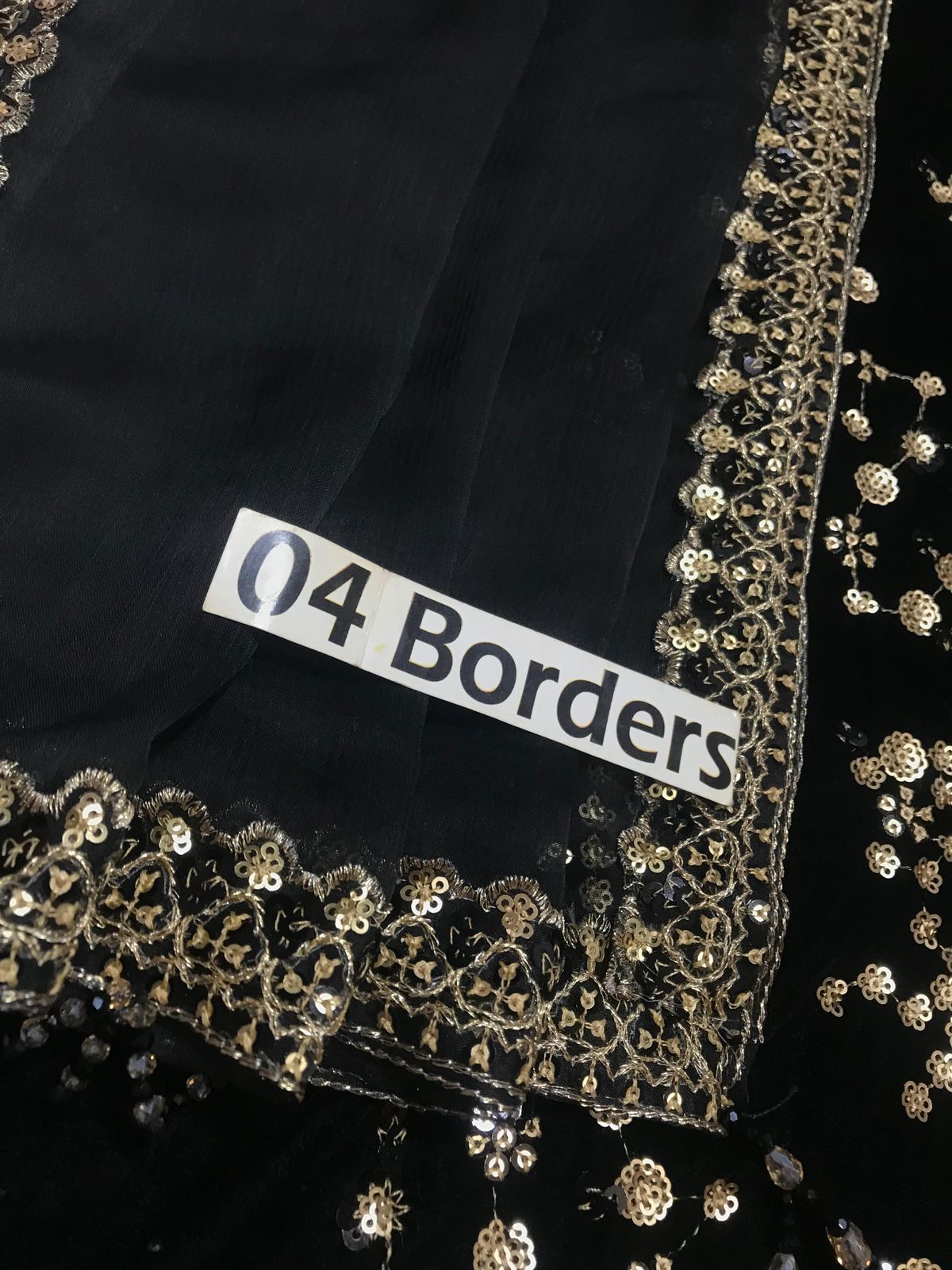 Fully Heavy Embroidered Chiffon Dupatta with 4 Side Cut Work Border & Hanging Tussles Dupatta