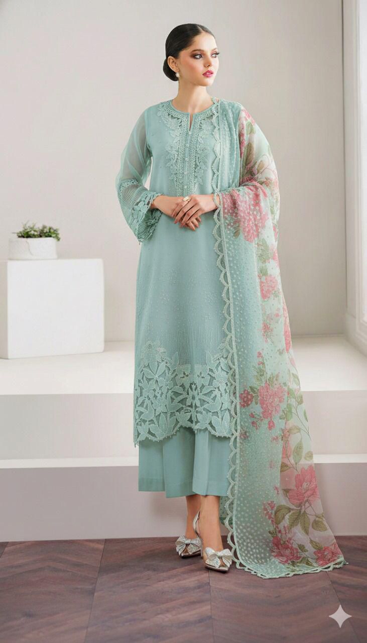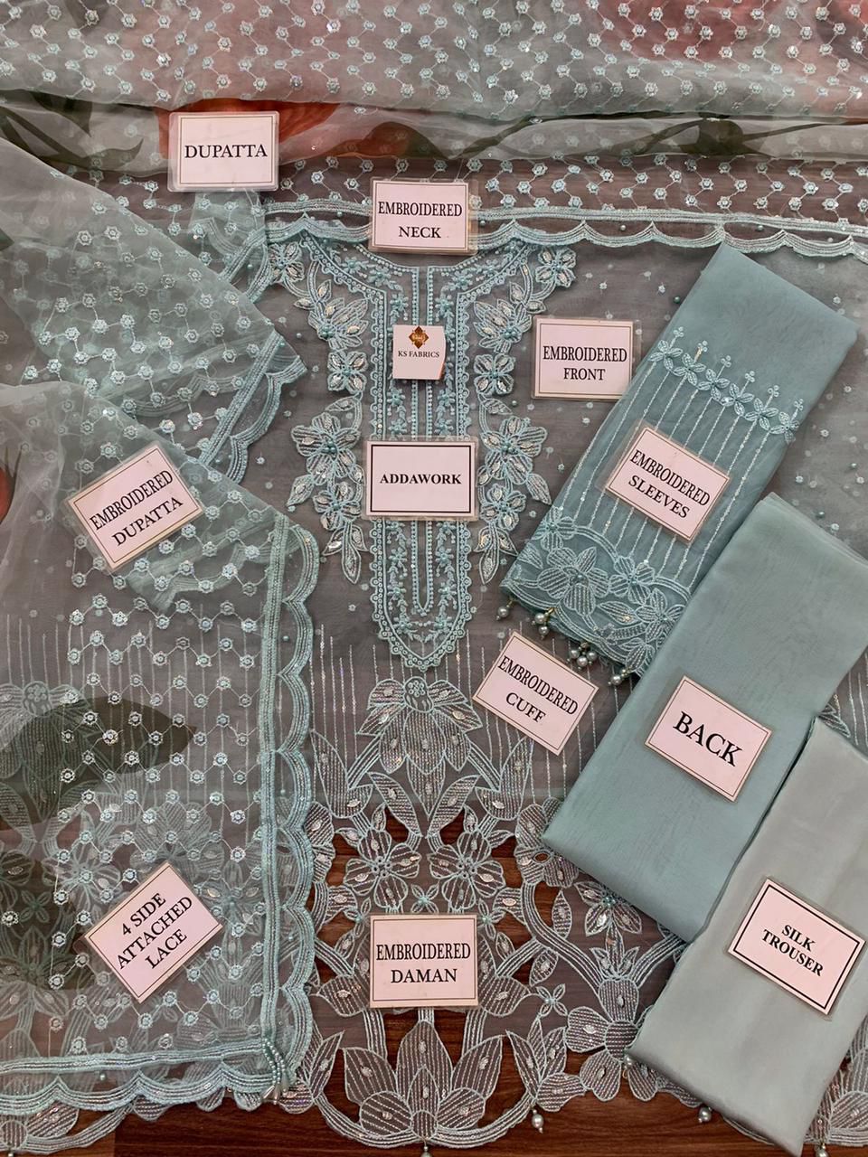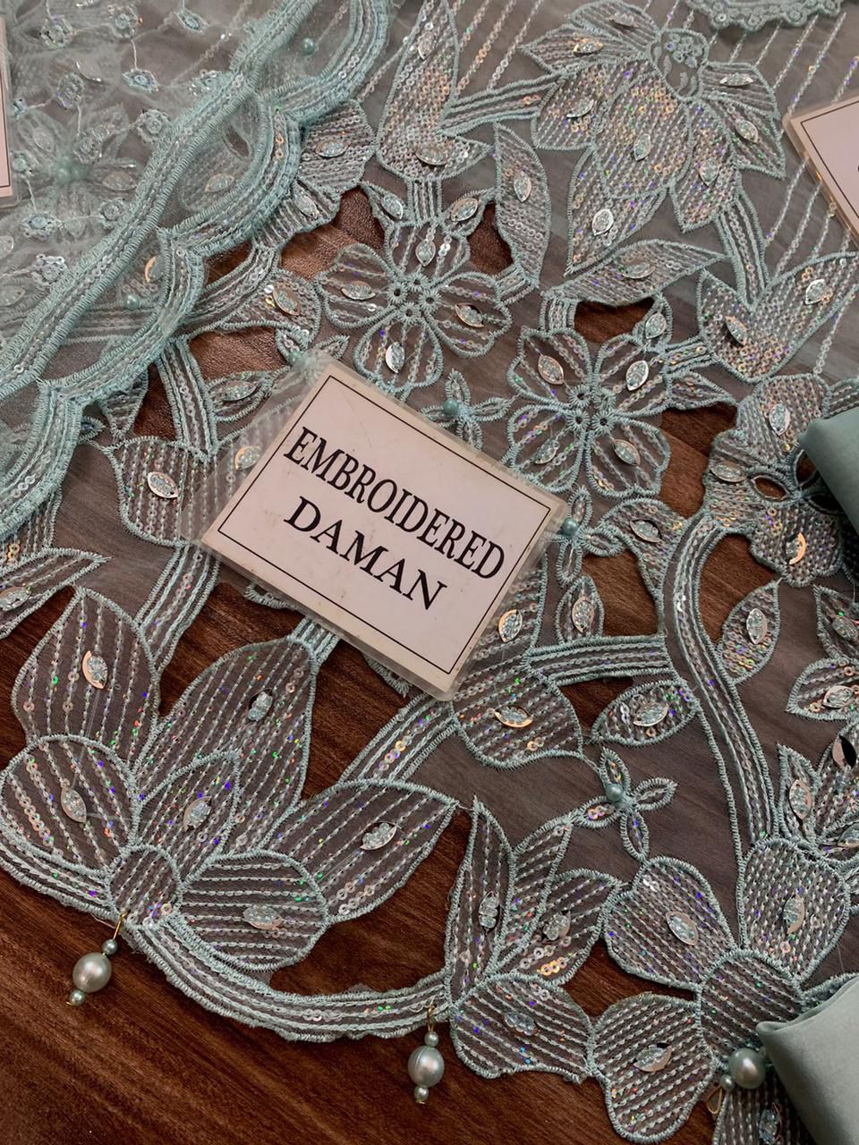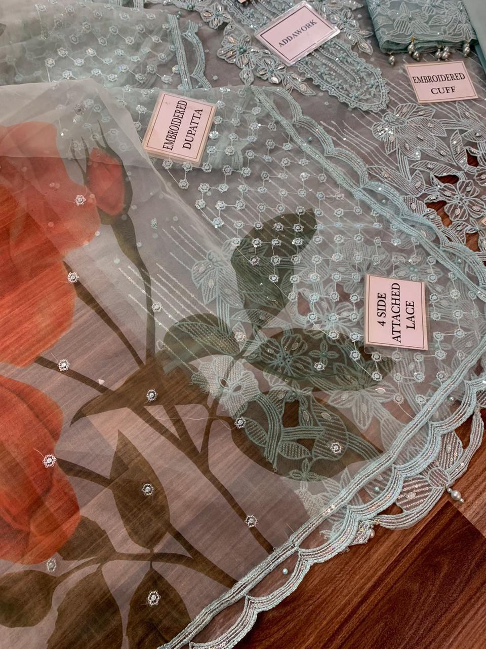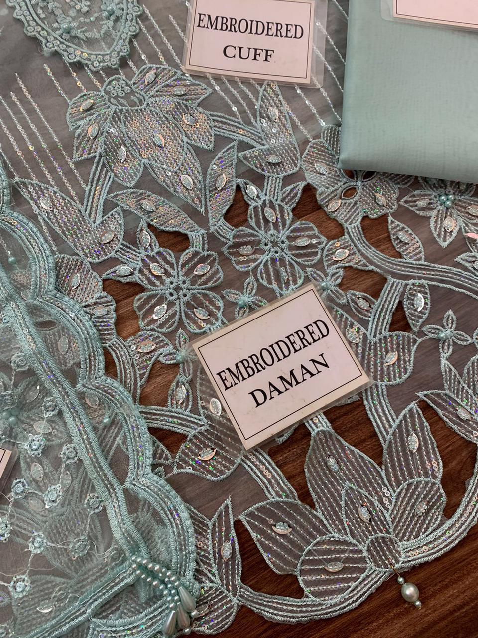 ORGANZA FULLY HEAVY EMBROIDERED SLEEVES WITH CUFF BORDER EMBELISH WITH PEARLS