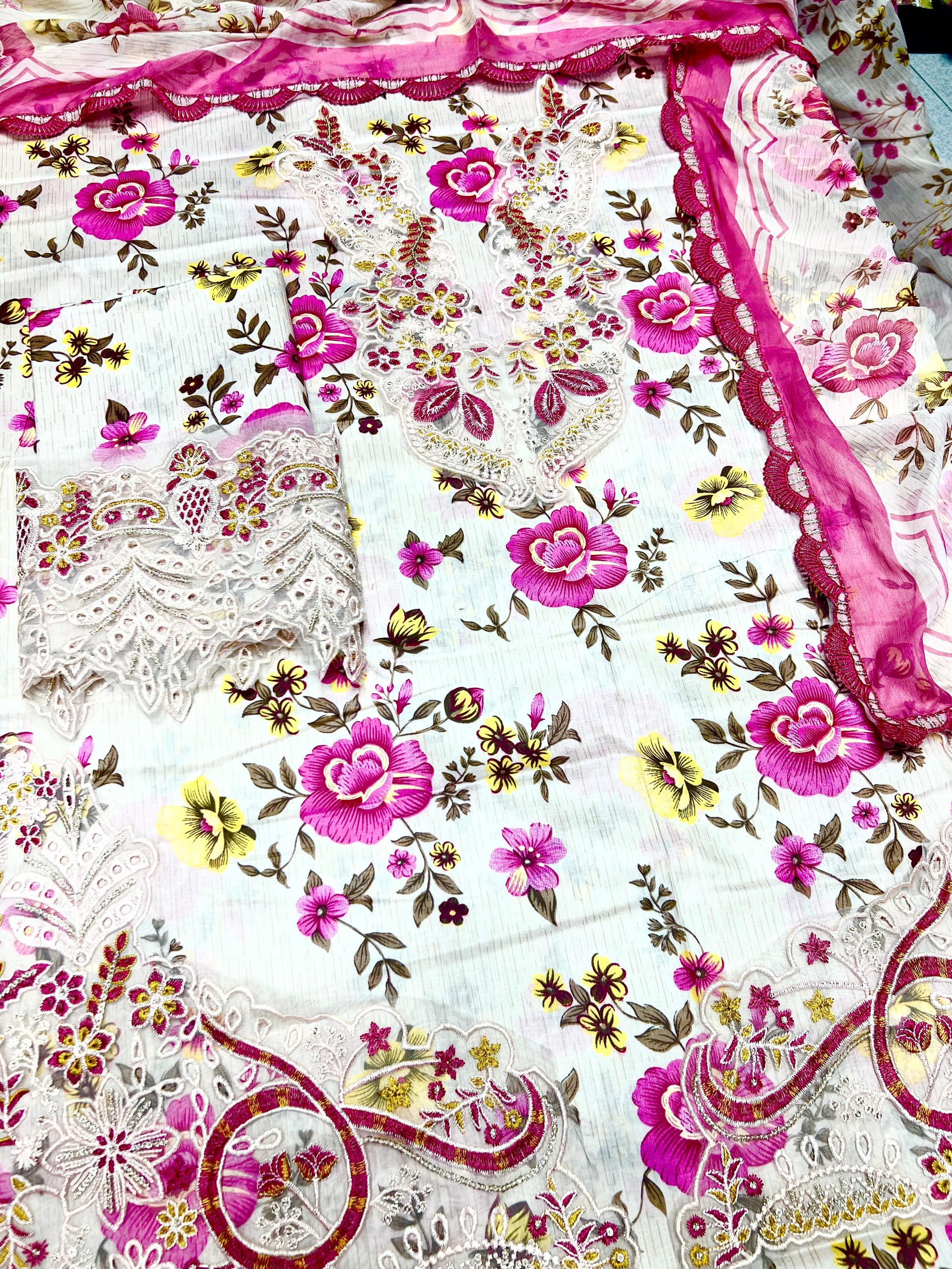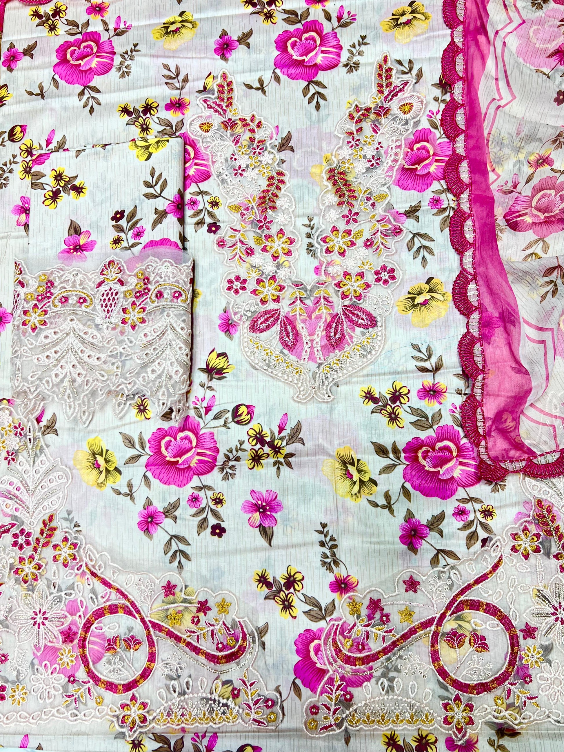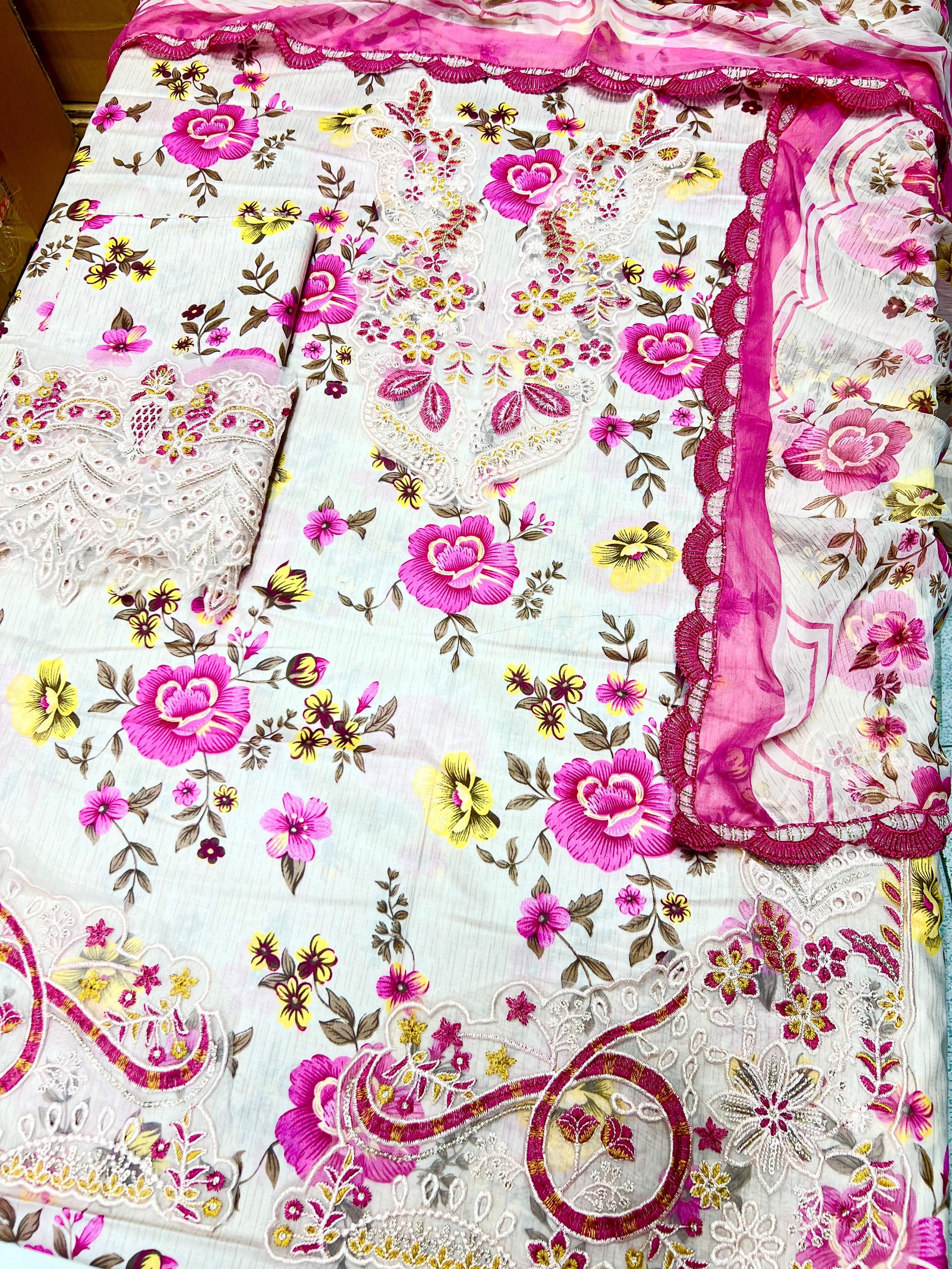 Digital Printed Chiffon Dupatta 4 Side Embroidered Border