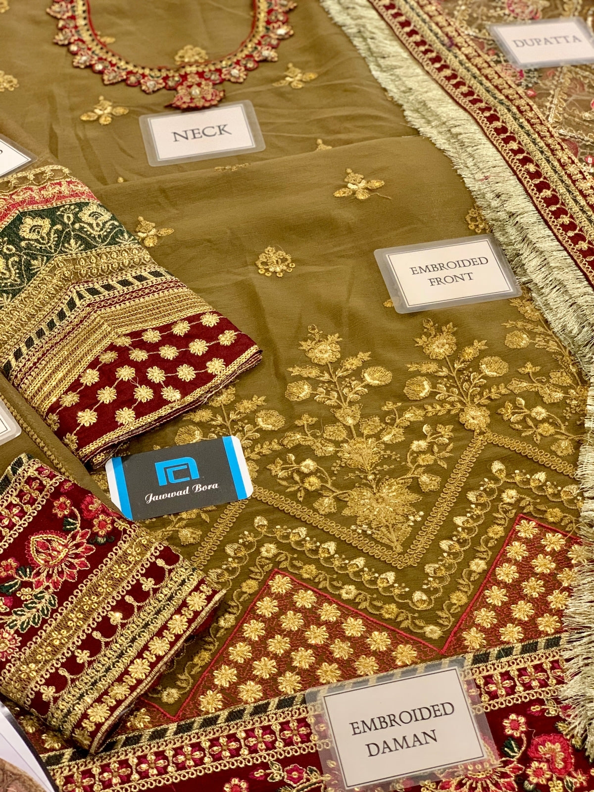 *chiffon fully embroidered spengle work back with heavy embroidered spengle work back daman boarder*